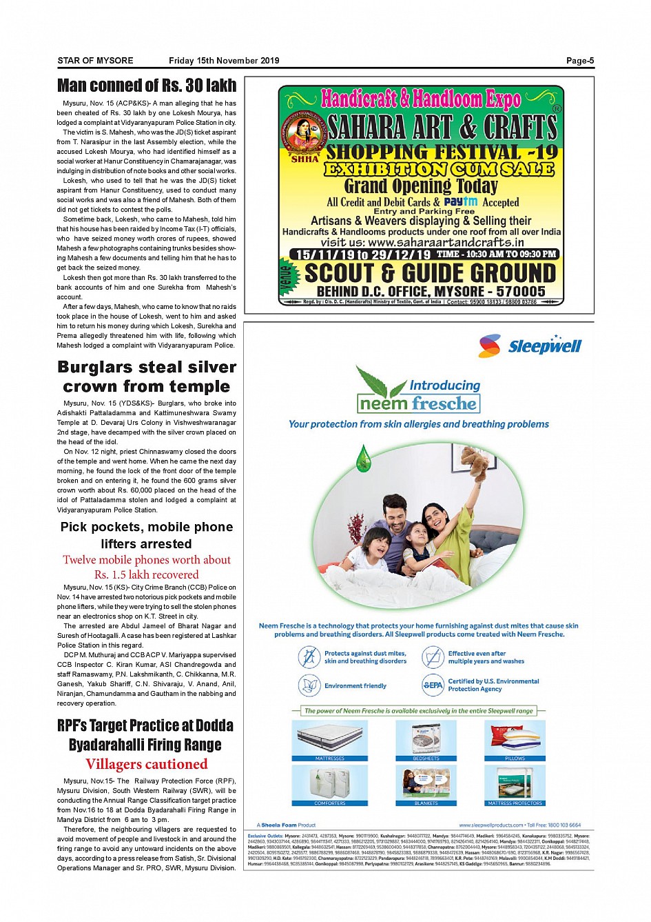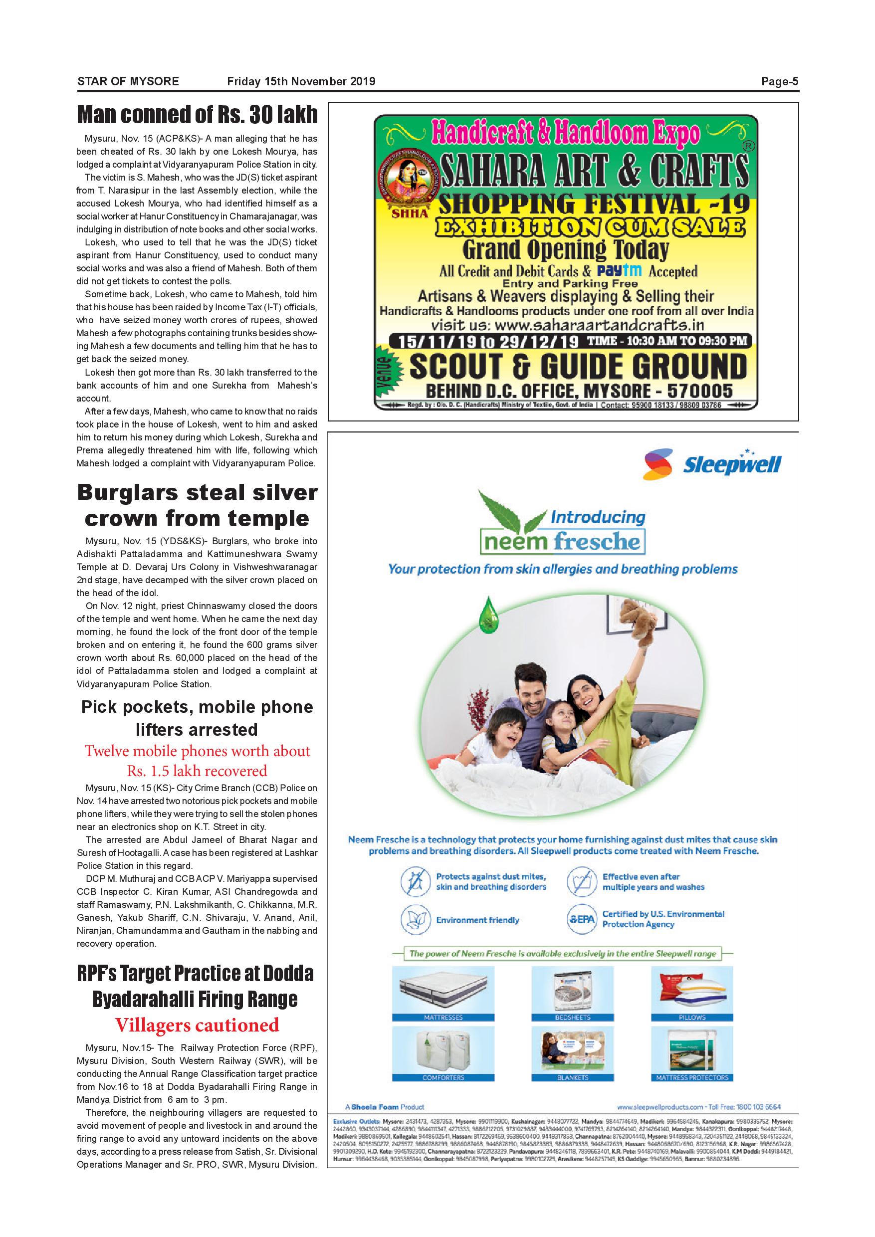 Star of Mysore Page: 5 November 15, 2019 << First << 5 >> Last >> Page 1Page 2Page 3Page 4Page 5Page 6Page 7Page 8Page 9Page 10Page 11Page 12Page 13Page 14Page 15Page 16 × Star of Mysore << First << 5 >> Last >> Page-001Page-002Page-003Page-004Page-005Page-006Page-007Page-008Page-009Page-010Page-011Page-012Page-013Page-014Page-015Page-016 Page-005