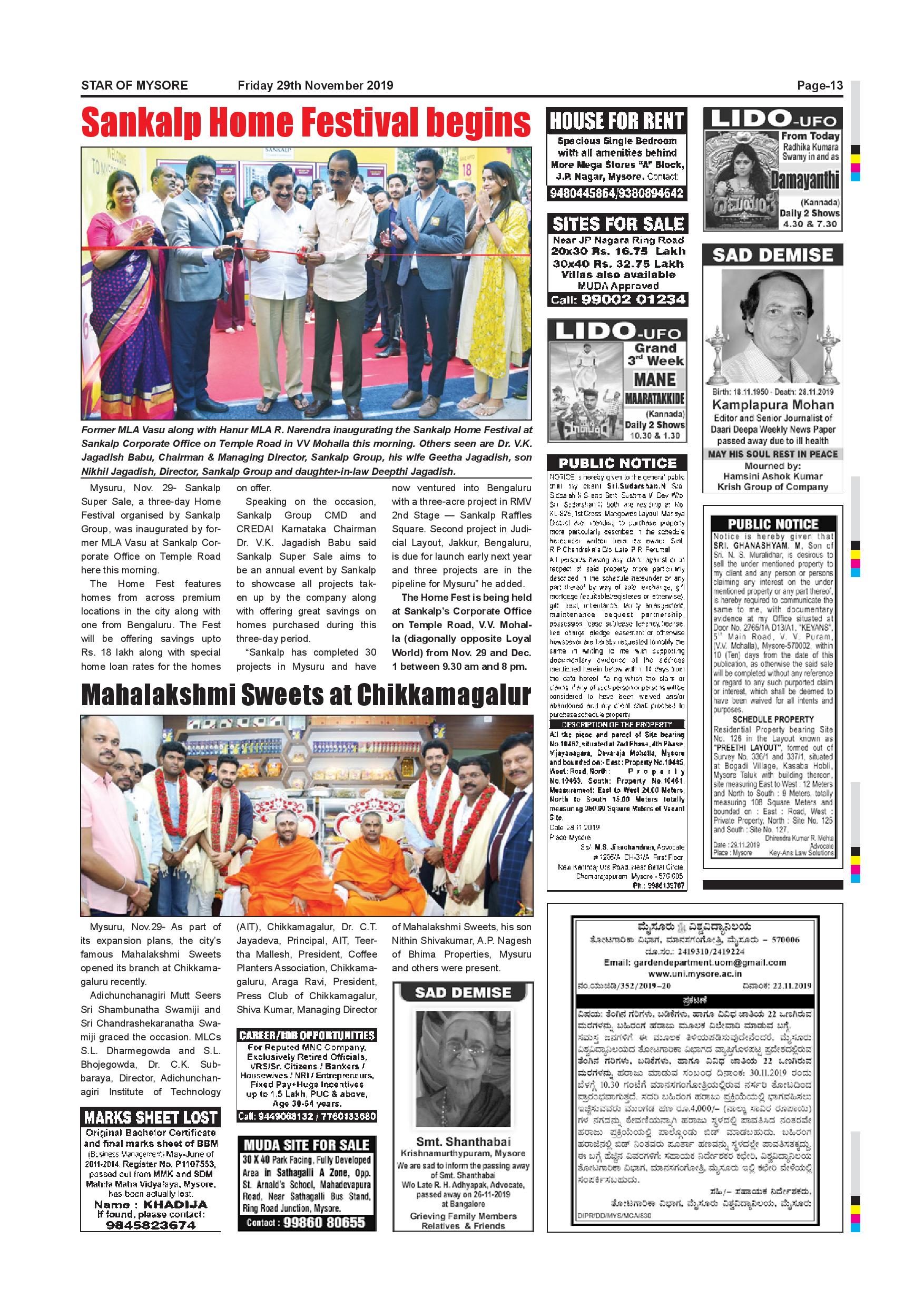 Star of Mysore Page: 13 November 29, 2019 << First << 13 >> Last >> Page 1Page 2Page 3Page 4Page 5Page 6Page 7Page 8Page 9Page 10Page 11Page 12Page 13Page 14Page 15Page 16 × Star of Mysore << First << 13 >> Last >> Page-001Page-002Page-003Page-004Page-005Page-006Page-007Page-008Page-009Page-010Page-011Page-012Page-013Page-014Page-015Page-016 Page-013