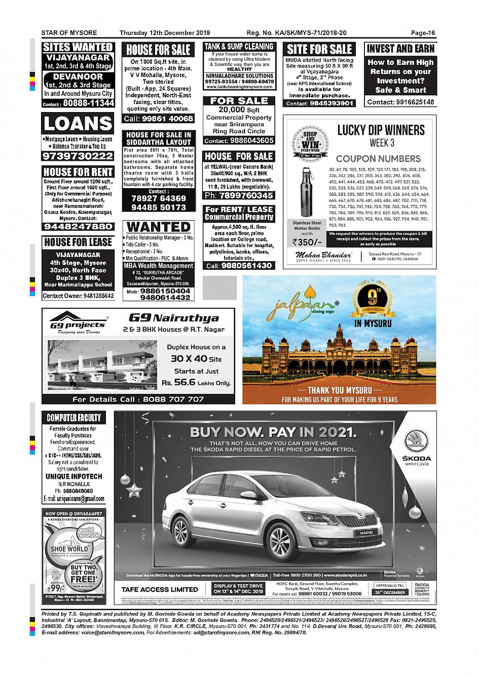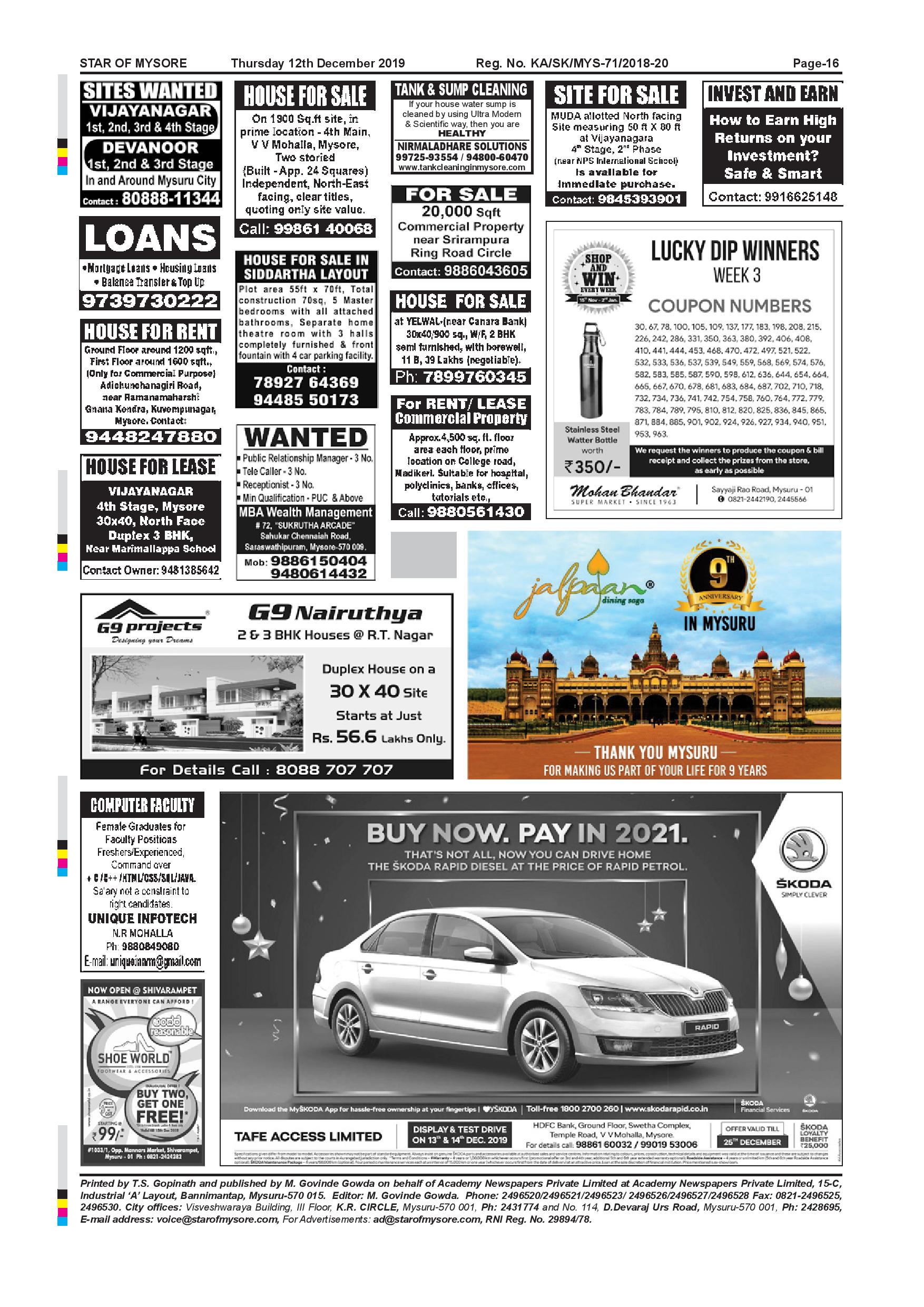 Star of Mysore Page: 16 December 12, 2019 << First << 16 >> Last >> Page 1Page 2Page 3Page 4Page 5Page 6Page 7Page 8Page 9Page 10Page 11Page 12Page 13Page 14Page 15Page 16 × Star of Mysore << First << 16 >> Last >> Page-001Page-002Page-003Page-004Page-005Page-006Page-007Page-008Page-009Page-010Page-011Page-012Page-013Page-014Page-015Page-016 Page-016