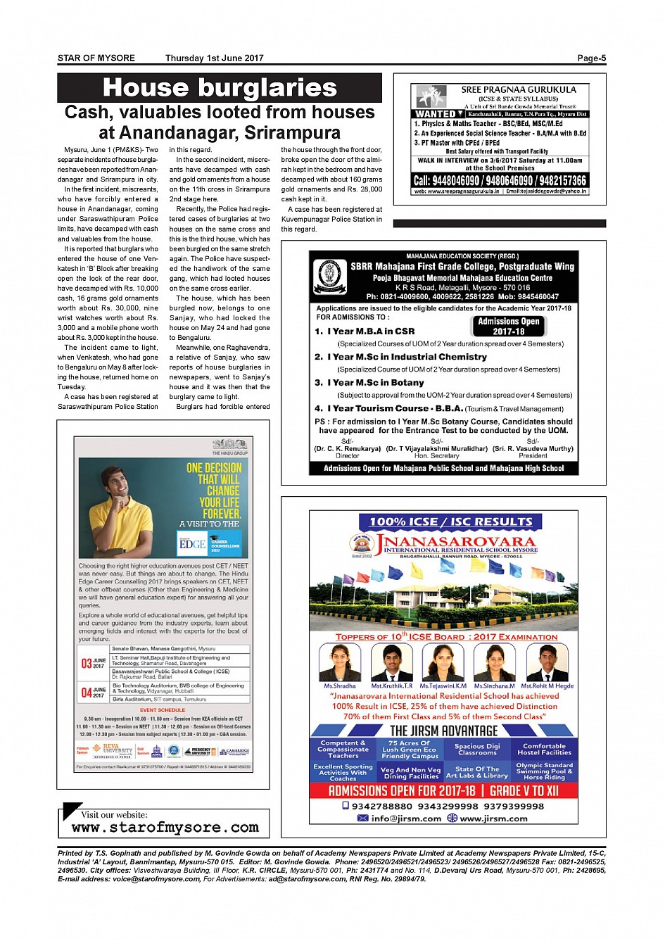 Star of Mysore Page: 5 June 01, 2017 << First << 5 >> Last >> Page 1Page 2Page 3Page 4Page 5Page 6Page 7Page 8Page 9Page 10Page 11Page 12Page 13Page 14Page 15Page 16 × Star of Mysore << First << 5 >> Last >> page-001page-002page-003page-004page-005page-006page-007page-008page-009page-010page-011page-012page-013page-014page-015page-016 page-005
