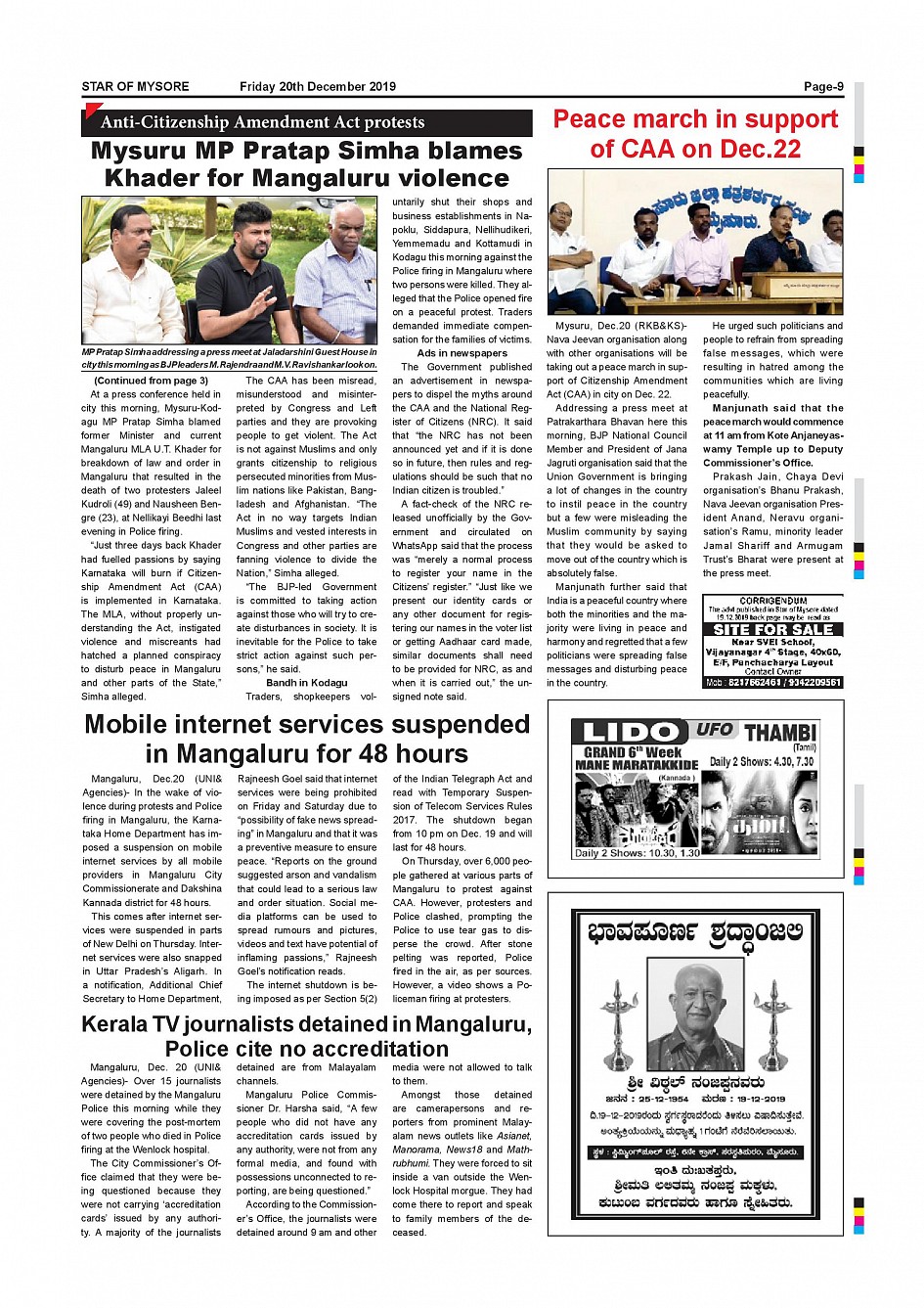 Star of Mysore Page: 9 December 20, 2019 << First << 9 >> Last >> Page 1Page 2Page 3Page 4Page 5Page 6Page 7Page 8Page 9Page 10Page 11Page 12Page 13Page 14Page 15Page 16 × Star of Mysore << First << 9 >> Last >> Page-001Page-002Page-003Page-004Page-005Page-006Page-007Page-008Page-009Page-010Page-011Page-012Page-013Page-014Page-015Page-016 Page-009