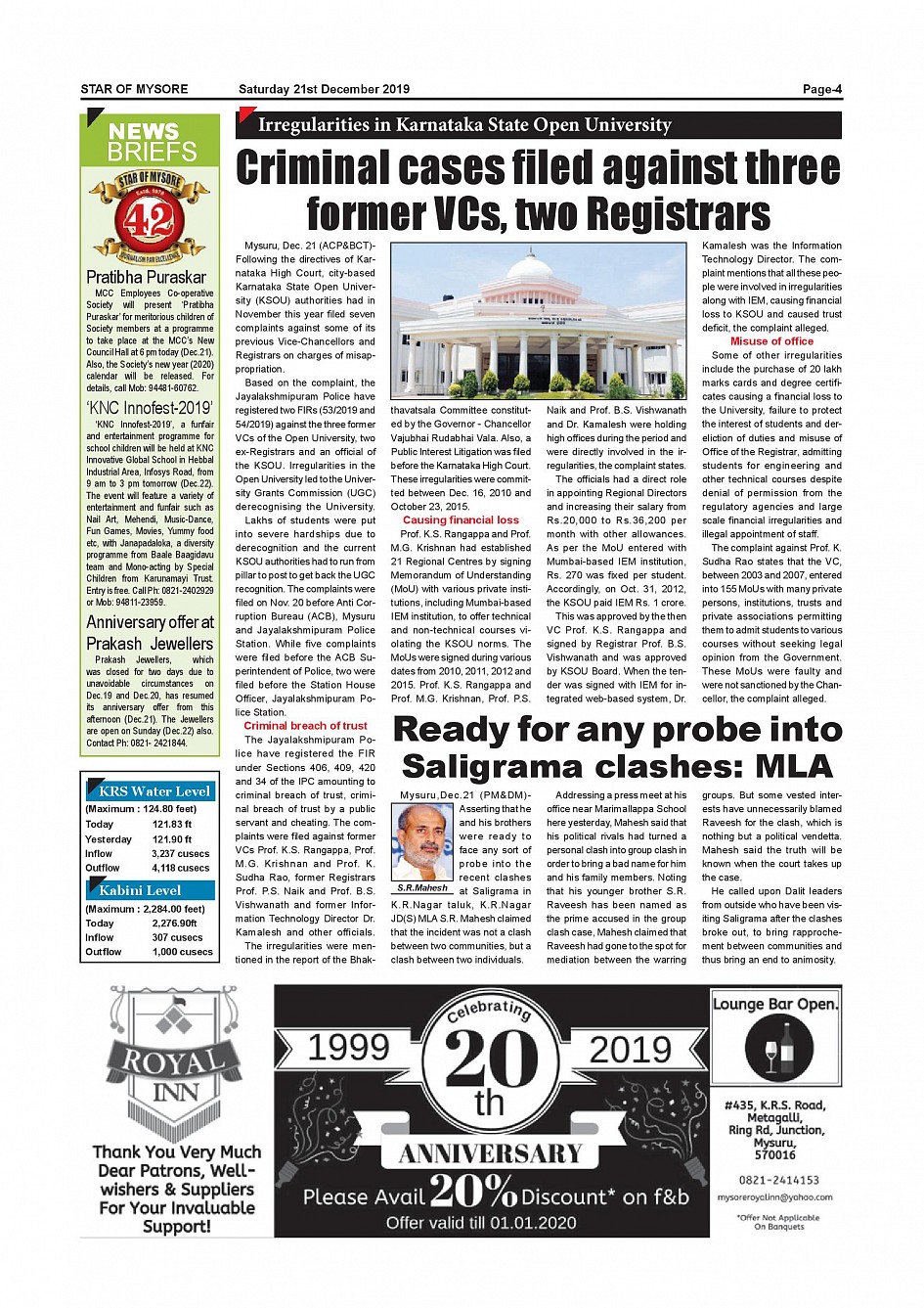 Star of Mysore Page: 4 December 21, 2019 << First << 4 >> Last >> Page 1Page 2Page 3Page 4Page 5Page 6Page 7Page 8Page 9Page 10Page 11Page 12Page 13Page 14Page 15Page 16Page 17Page 18Page 19 × Star of Mysore << First << 4 >> Last >> Page-001Page-002Page-003Page-004Page-005Page-006Page-007Page-008Page-009Page-010-011Page-012Page-013Page-014Page-015Page-016Page-017Page-018Page-019Page-020 Page-004