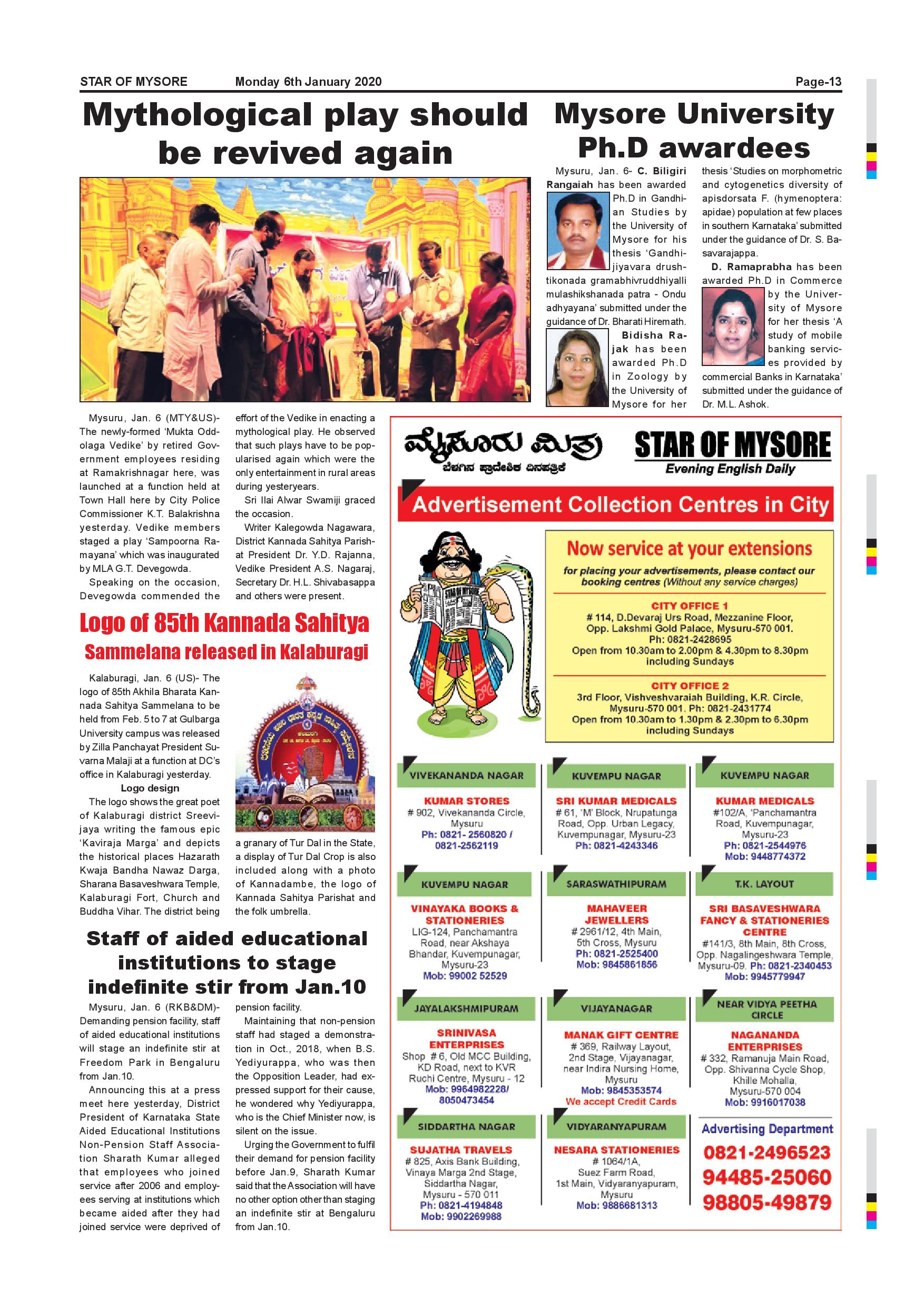 Star of Mysore Page: 13 January 06, 2020 << First << 13 >> Last >> Page 1Page 2Page 3Page 4Page 5Page 6Page 7Page 8Page 9Page 10Page 11Page 12Page 13Page 14Page 15Page 16 × Star of Mysore << First << 13 >> Last >> Page-001Page-002Page-003Page-004Page-005Page-006Page-007Page-008Page-009Page-010Page-011Page-012Page-013Page-014Page-015Page-016 Page-013