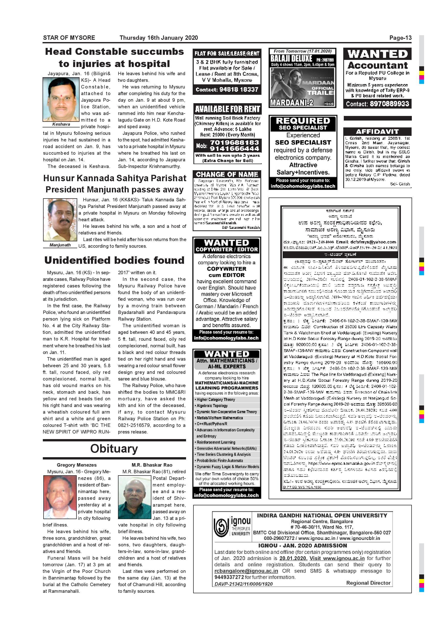 Star of Mysore Page: 13 January 16, 2020 << First << 13 >> Last >> Page 1Page 2Page 3Page 4Page 5Page 6Page 7Page 8Page 9Page 10Page 11Page 12Page 13Page 14Page 15Page 16 × Star of Mysore << First << 13 >> Last >> Page-001Page-002Page-003Page-004Page-005Page-006Page-007Page-008Page-009Page-010Page-011Page-012Page-013Page-014Page-015Page-016 Page-013
