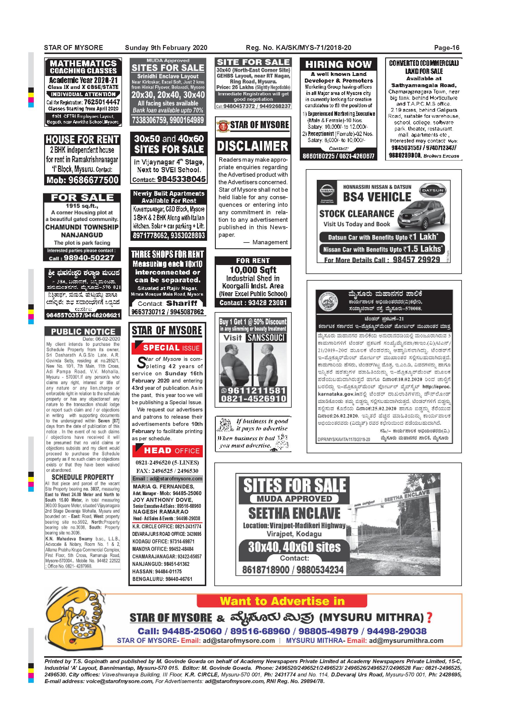 Star of Mysore Page: 16 February 09, 2020 << First << 16 >> Last >> Page 1Page 2Page 3Page 4Page 5Page 6Page 7Page 8Page 9Page 10Page 11Page 12Page 13Page 14Page 15Page 16 × Star of Mysore << First << 16 >> Last >> page-001page-002page-003page-004page-005page-006page-007page-008page-009page-010page-011page-012page-013page-014page-015page-016 page-016