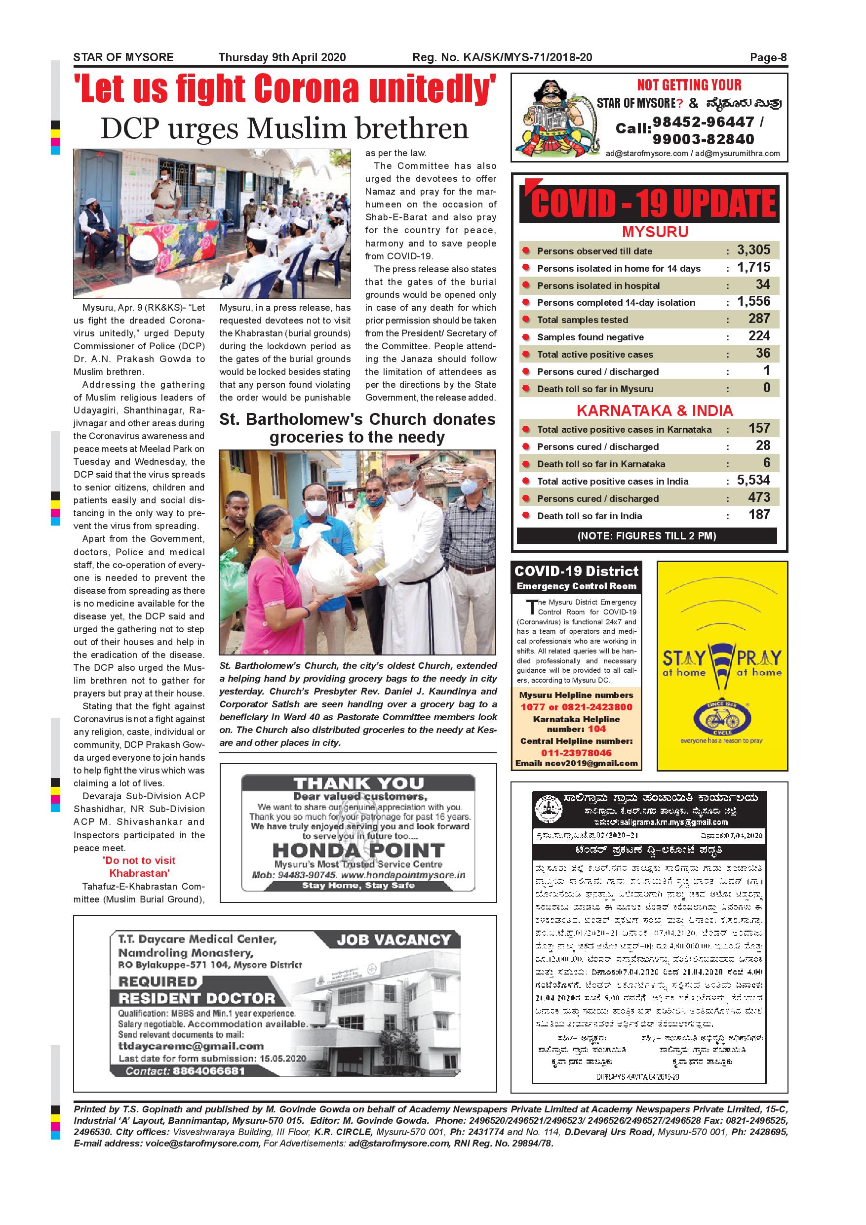 Star of Mysore Page: 8 April 09, 2020 << First << 8 >> Last >> Page 1Page 2Page 3Page 4Page 5Page 6Page 7Page 8 × Star of Mysore << First << 8 >> Last >> page-001page-002page-003page-004page-005page-006page-007page-008 page-008