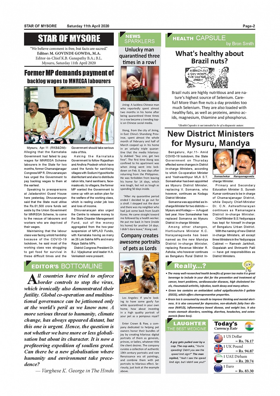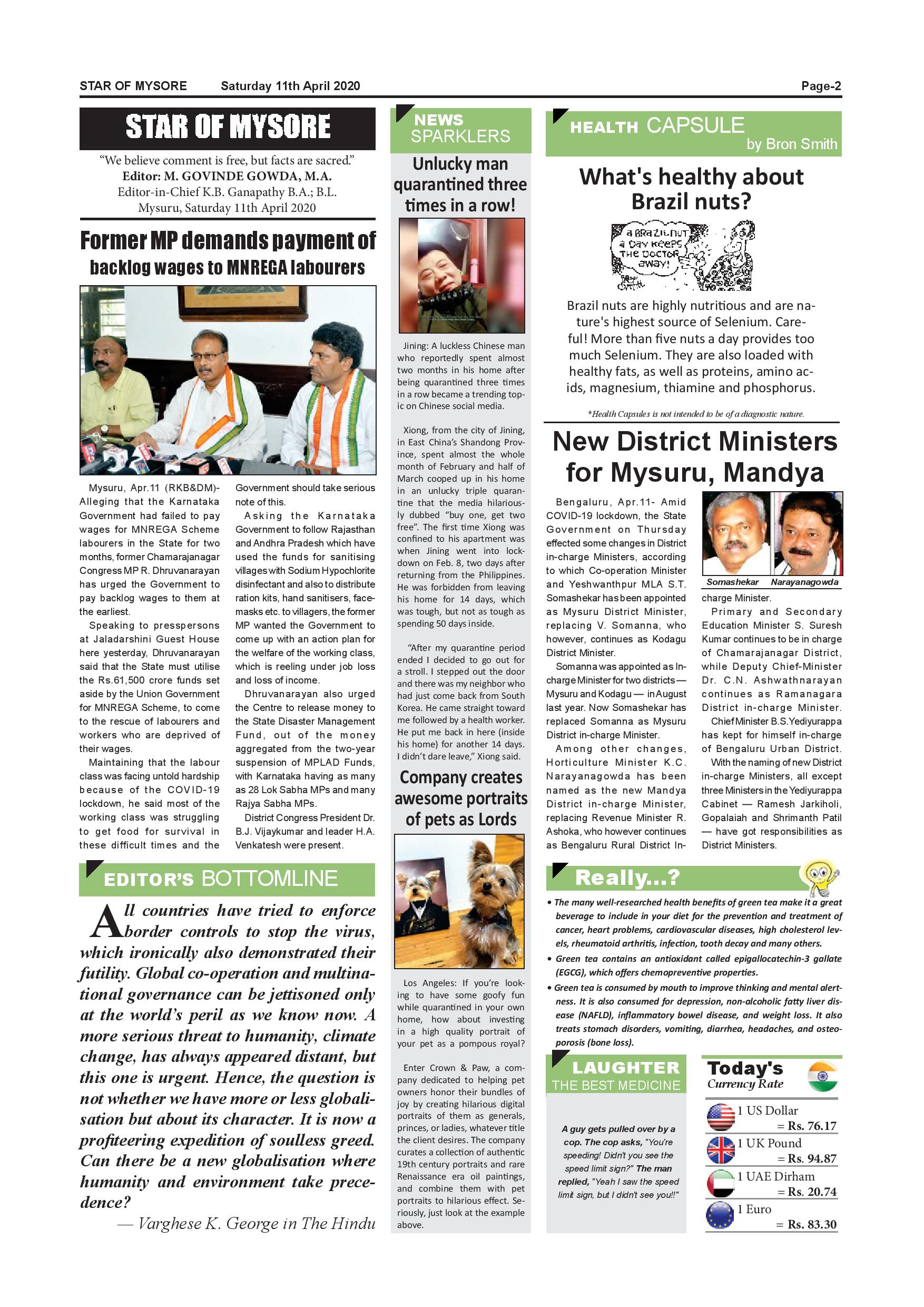 Star of Mysore Page: 2 April 11, 2020 << First << 2 >> Last >> Page 1Page 2Page 3Page 4Page 5Page 6Page 7Page 8 × Star of Mysore << First << 2 >> Last >> page-001page-002page-003page-004page-005page-006page-007page-008 page-002