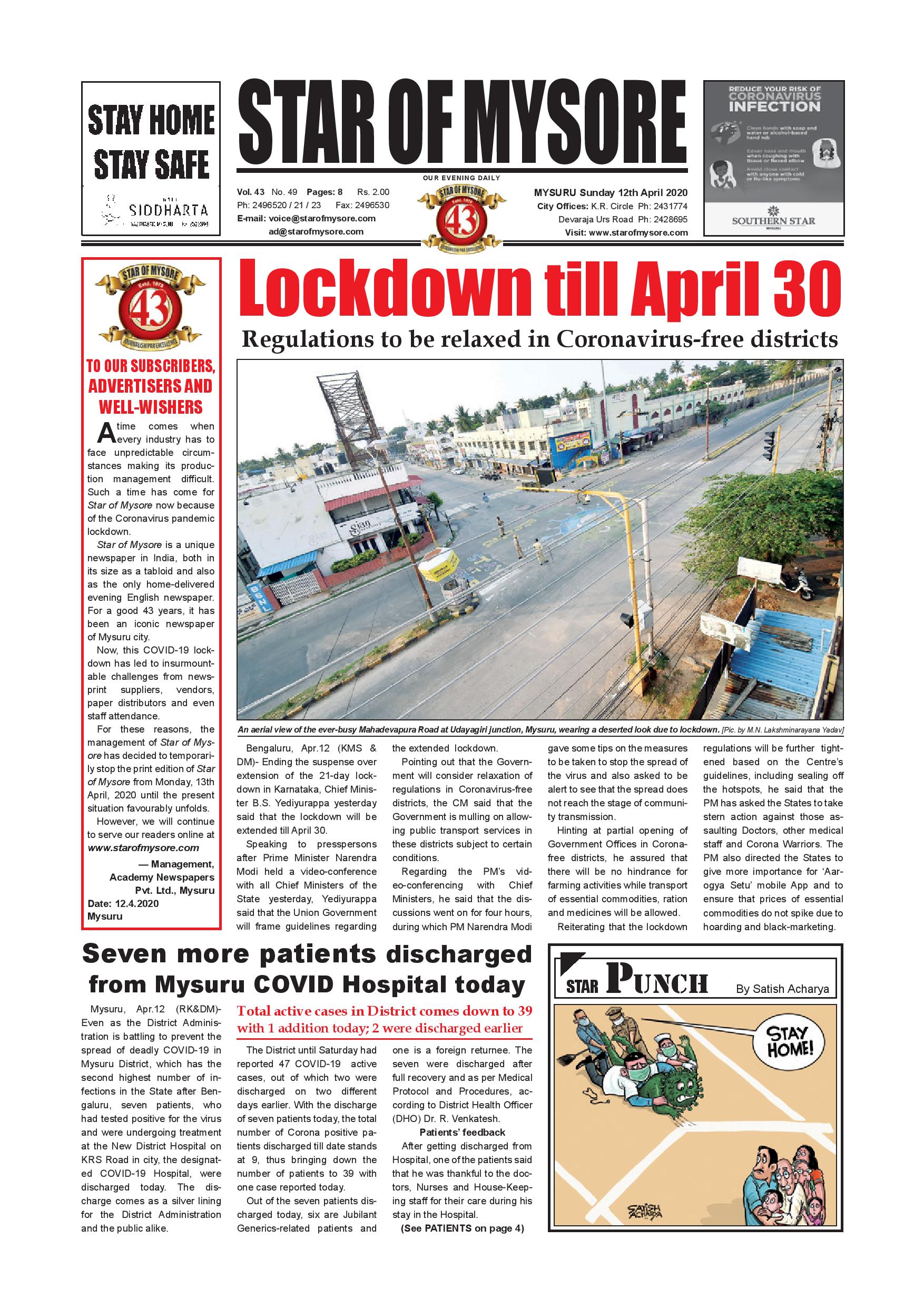 Star of Mysore April 12, 2020 << First << 1 >> Last >> Page 1Page 2Page 3Page 4Page 5Page 6Page 7Page 8 × Star of Mysore << First << 1 >> Last >> page-001page-002page-003page-004page-005page-006page-007page-008 page-001