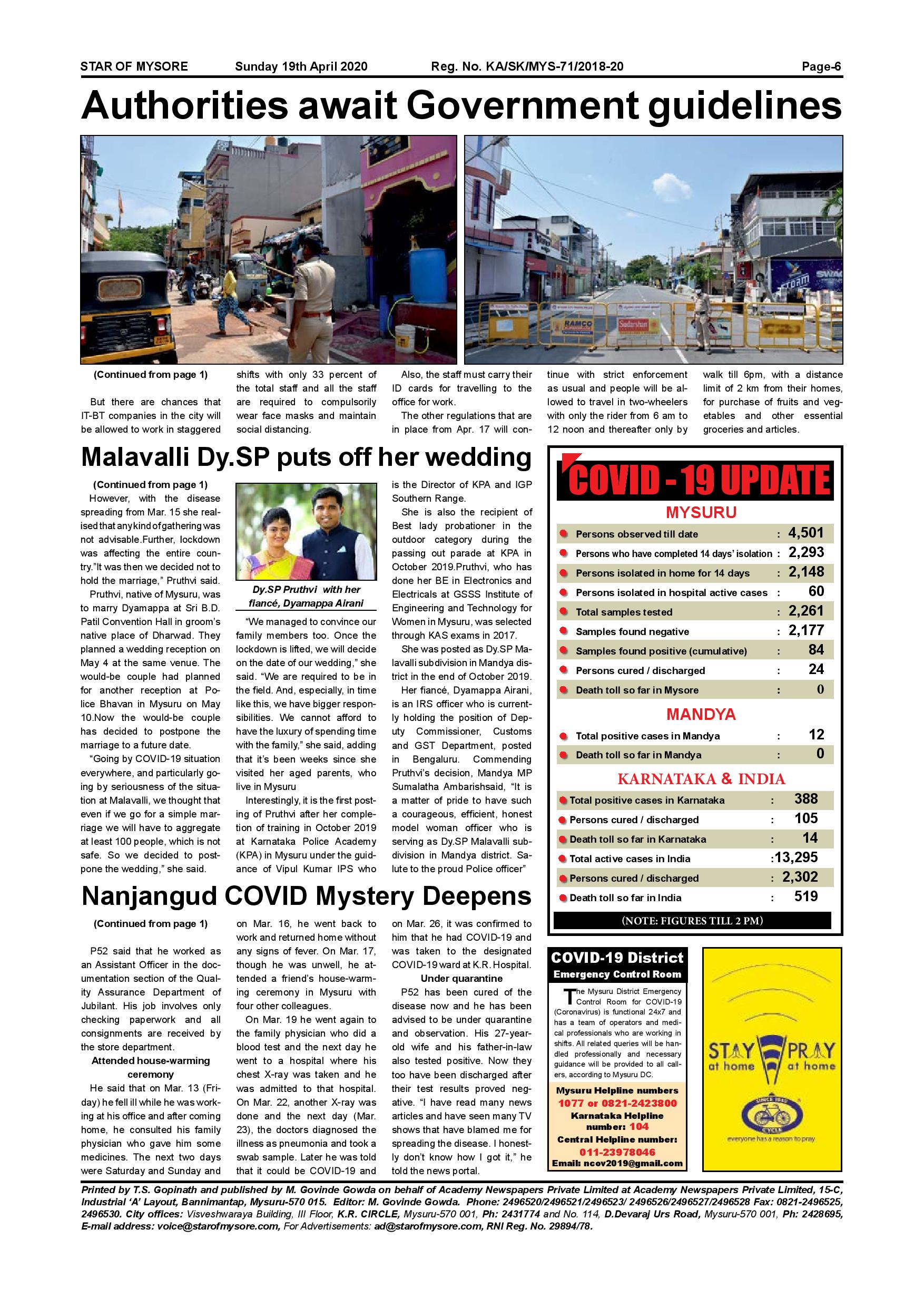 Star of Mysore Page: 6 April 19, 2020 << First << 6 >> Last >> Page 1Page 2Page 3Page 4Page 5Page 6 × Star of Mysore << First << 6 >> Last >> Page 001Page 002Page 003Page 004Page 005Page 006 Page 006