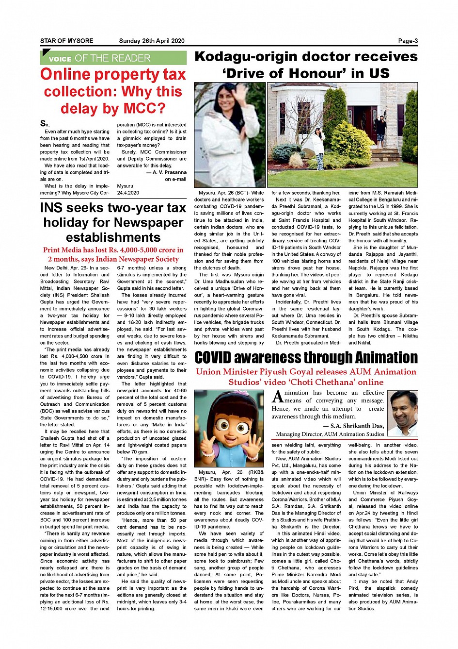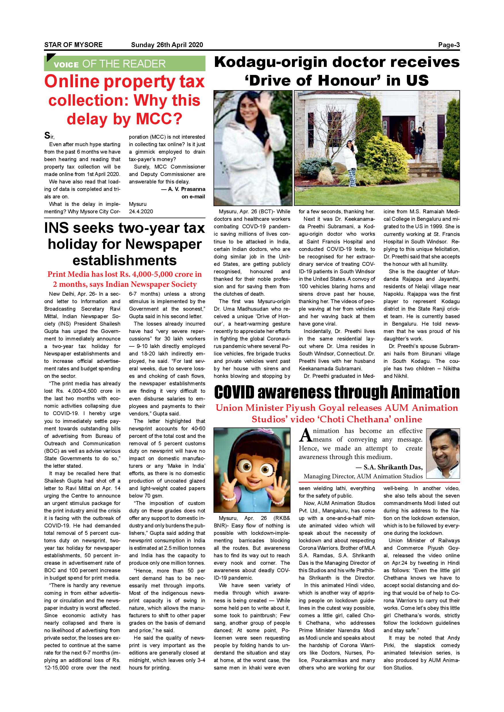 Star of Mysore Page: 3 April 26, 2020 << First << 3 >> Last >> Page 1Page 2Page 3Page 4Page 5Page 6 × Star of Mysore << First << 3 >> Last >> Page 001Page 002Page 003Page 004Page 005Page 006 Page 003