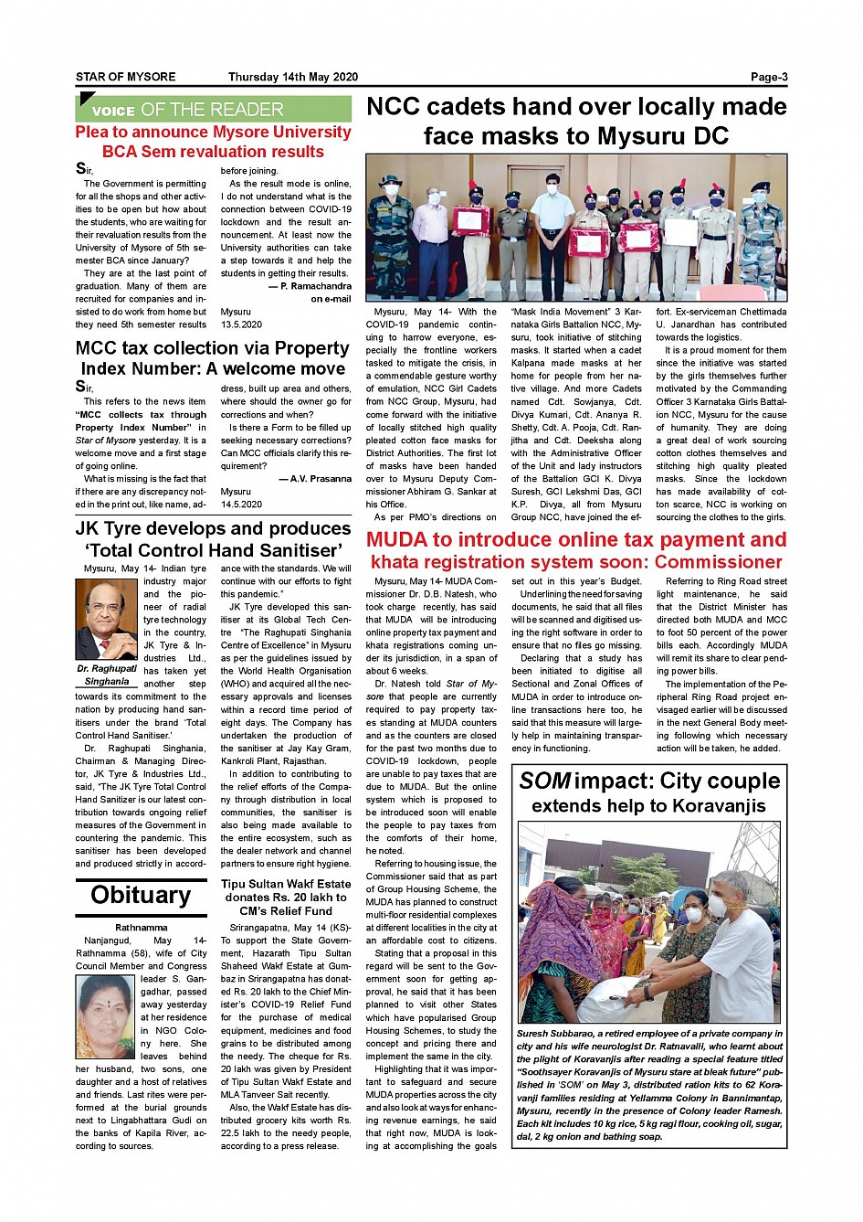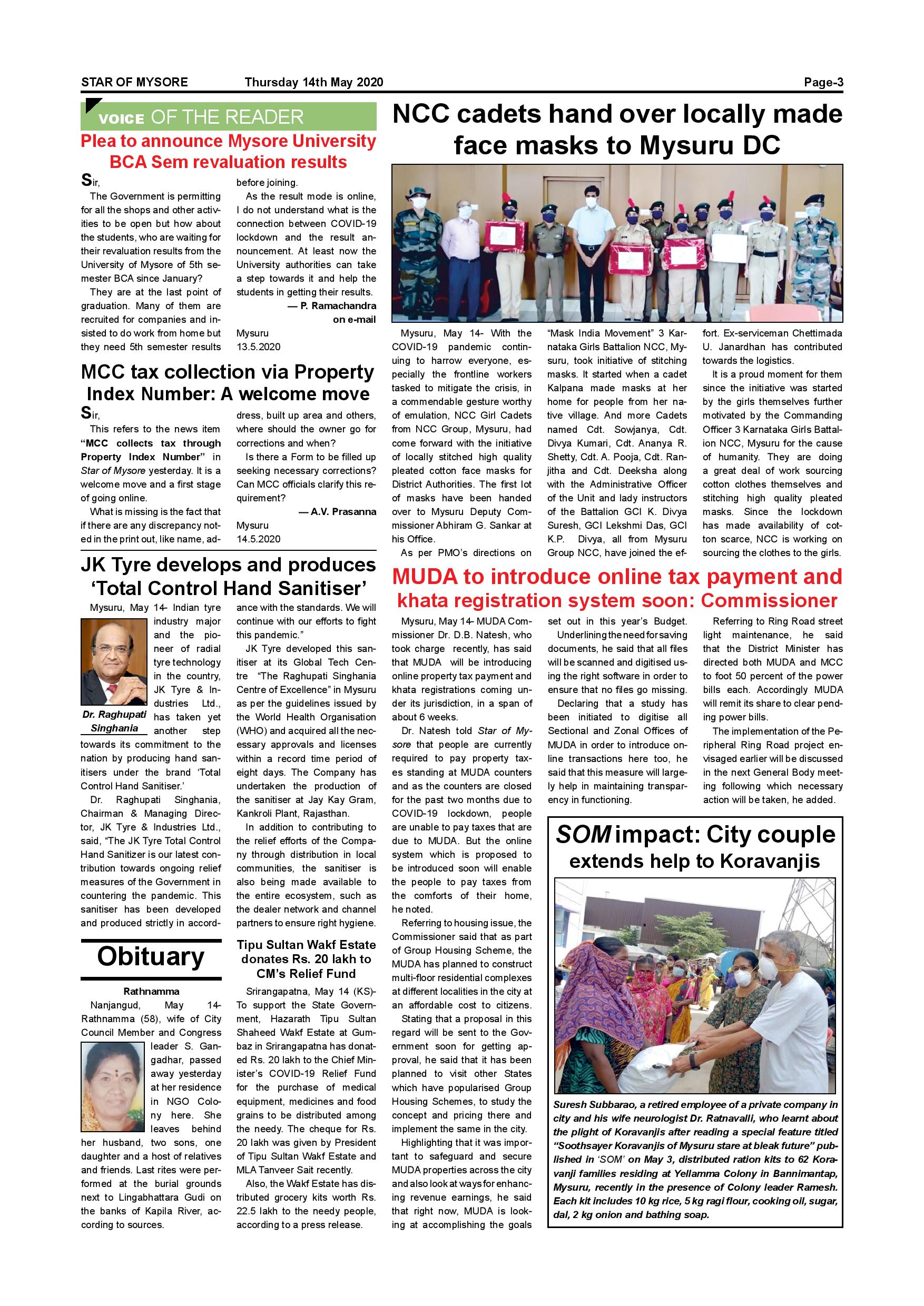 Star of Mysore Page: 3 May 14, 2020 << First << 3 >> Last >> Page 1Page 2Page 3Page 4Page 5Page 6 × Star of Mysore << First << 3 >> Last >> Page 001Page 002Page 003Page 004Page 005Page 006 Page 003