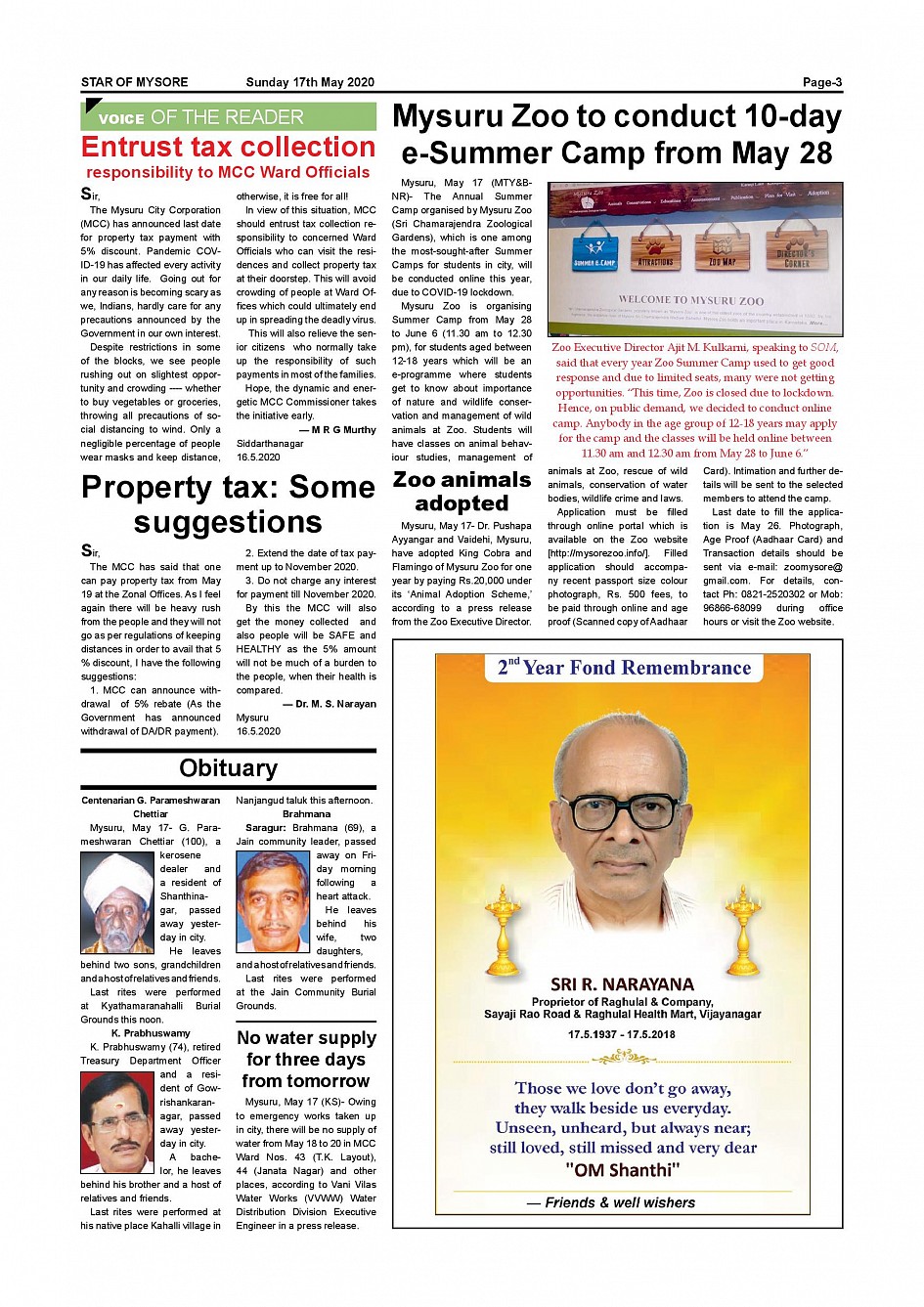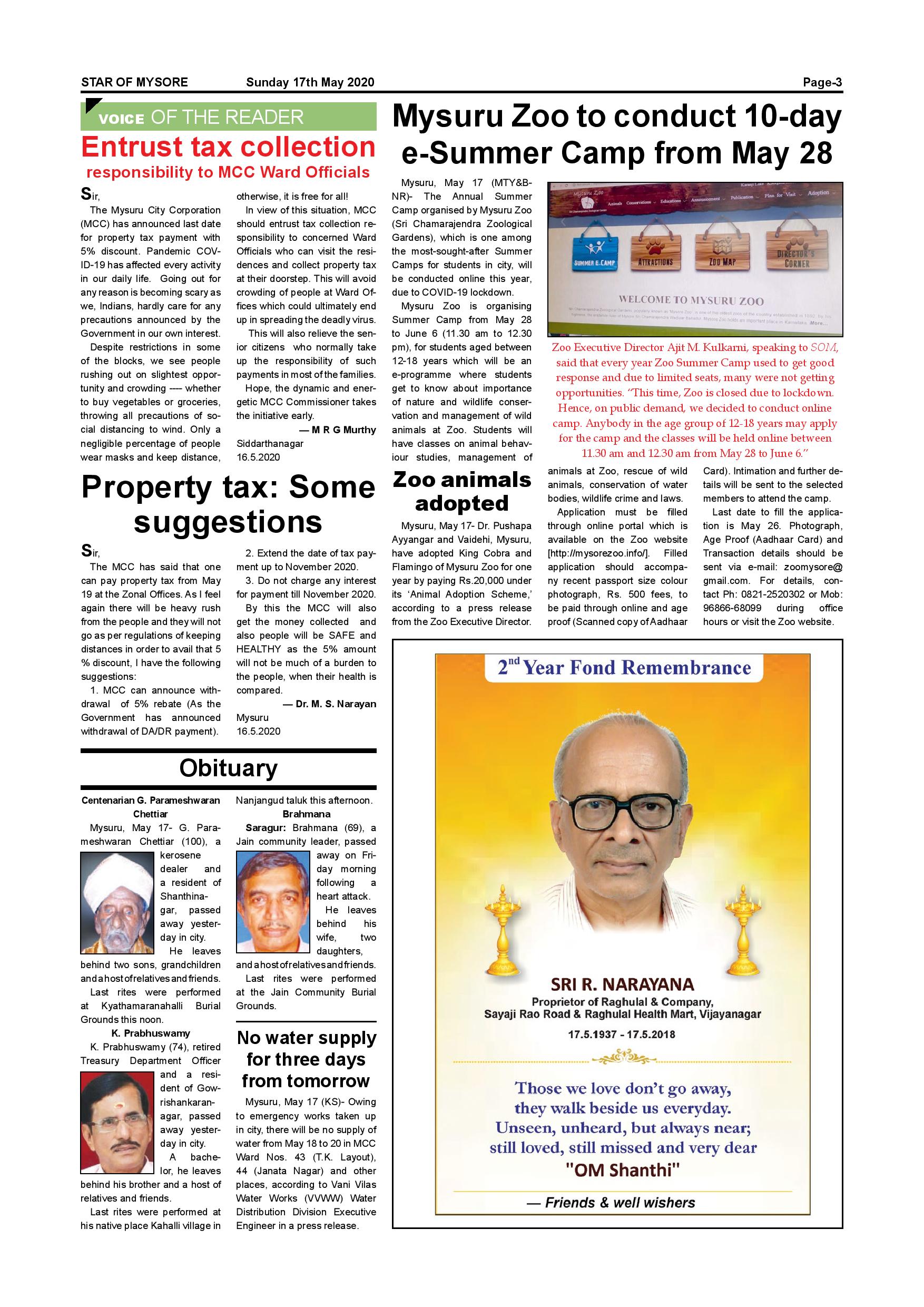 Star of Mysore Page: 3 May 17, 2020 << First << 3 >> Last >> Page 1Page 2Page 3Page 4Page 5Page 6 × Star of Mysore << First << 3 >> Last >> Page 001Page 002Page 003Page 004Page 005Page 006 Page 003