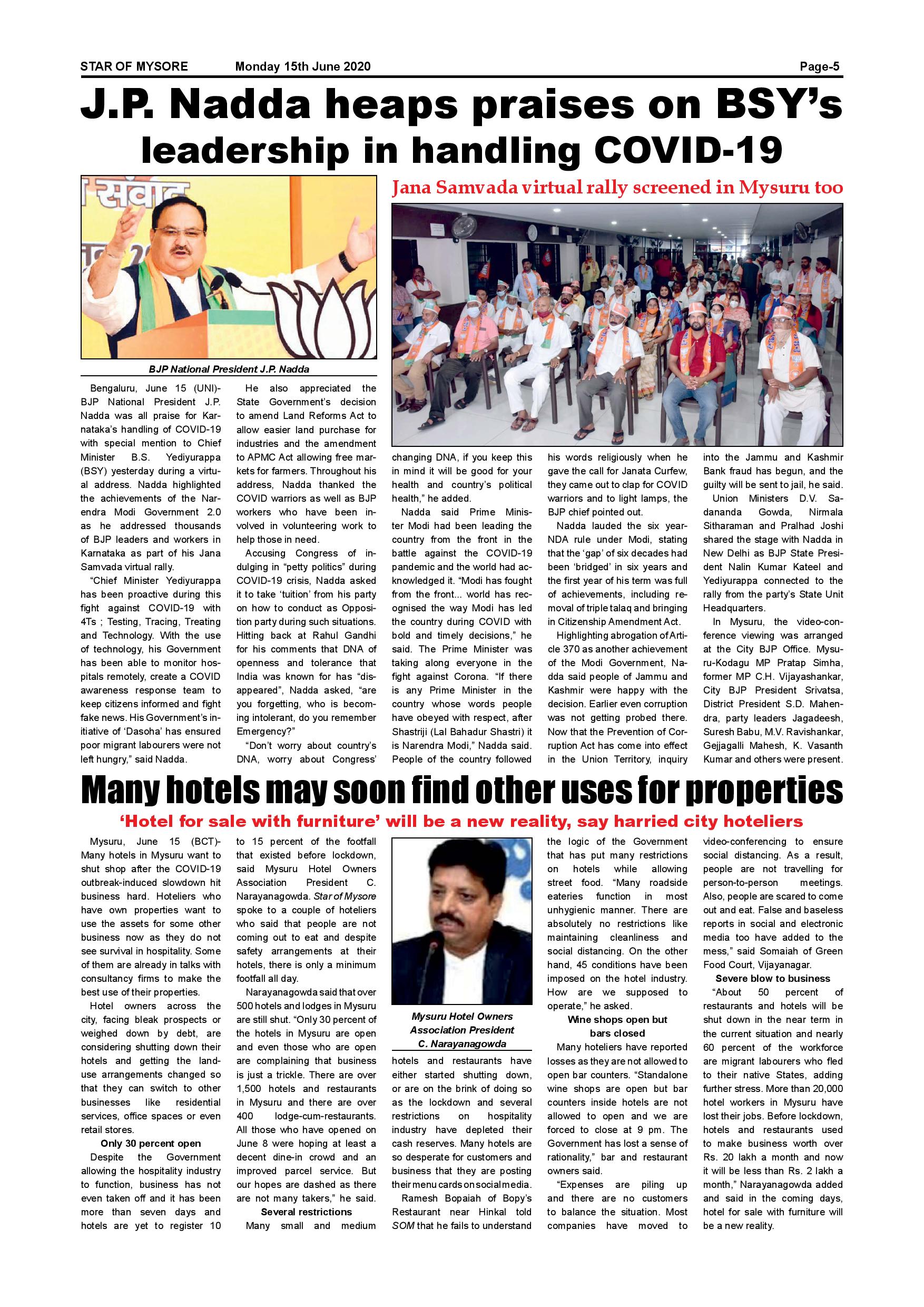 Star of Mysore Page: 5 June 15, 2020 << First << 5 >> Last >> Page 1Page 2Page 3Page 4Page 5Page 6 × Star of Mysore << First << 5 >> Last >> page 1page 2page 3page 4page 5page 6 page 5