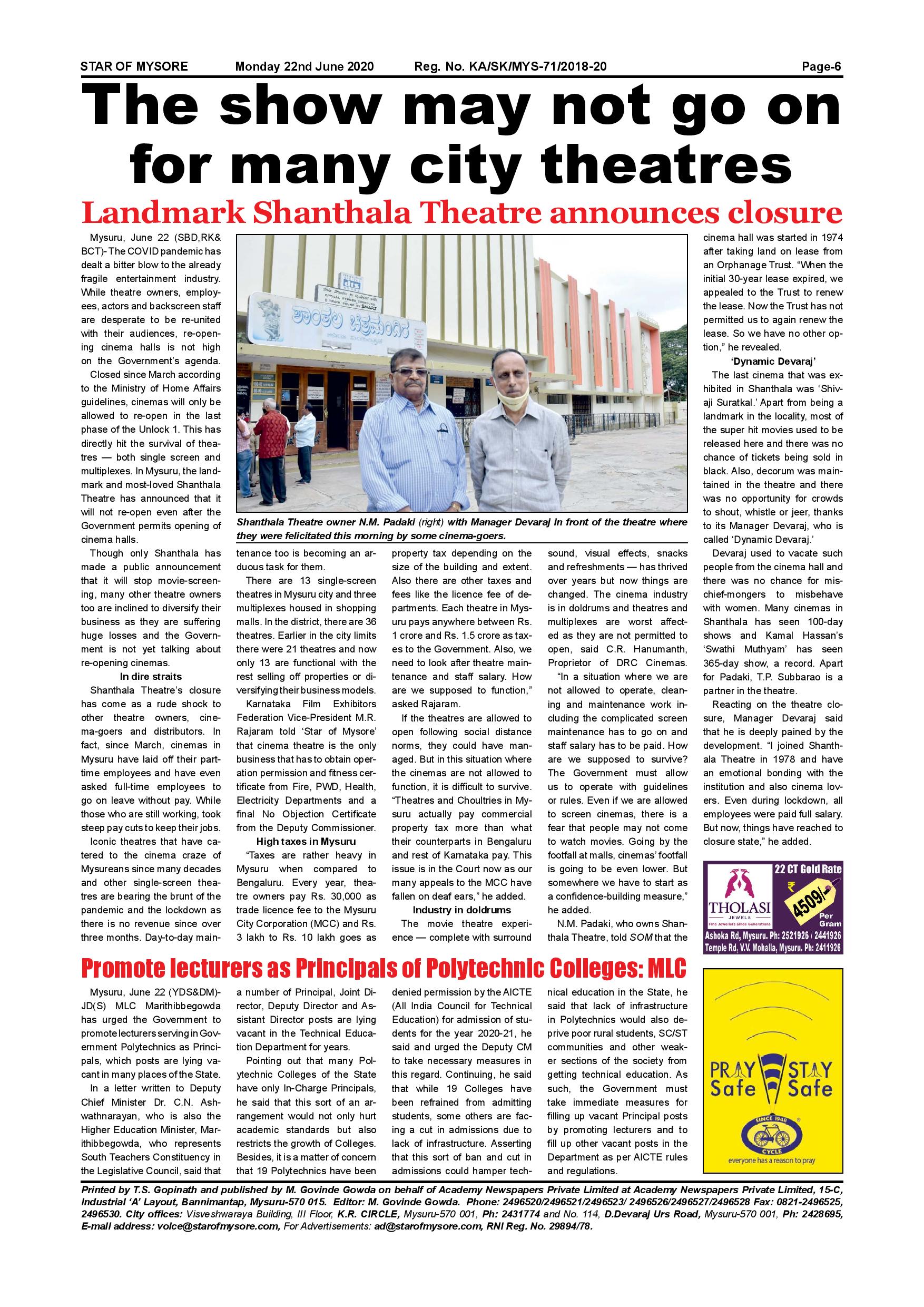 Star of Mysore Page: 6 June 22, 2020 << First << 6 >> Last >> Page 1Page 2Page 3Page 4Page 5Page 6 × Star of Mysore << First << 6 >> Last >> page 1page 2page 3page 4page 5page 6 page 6