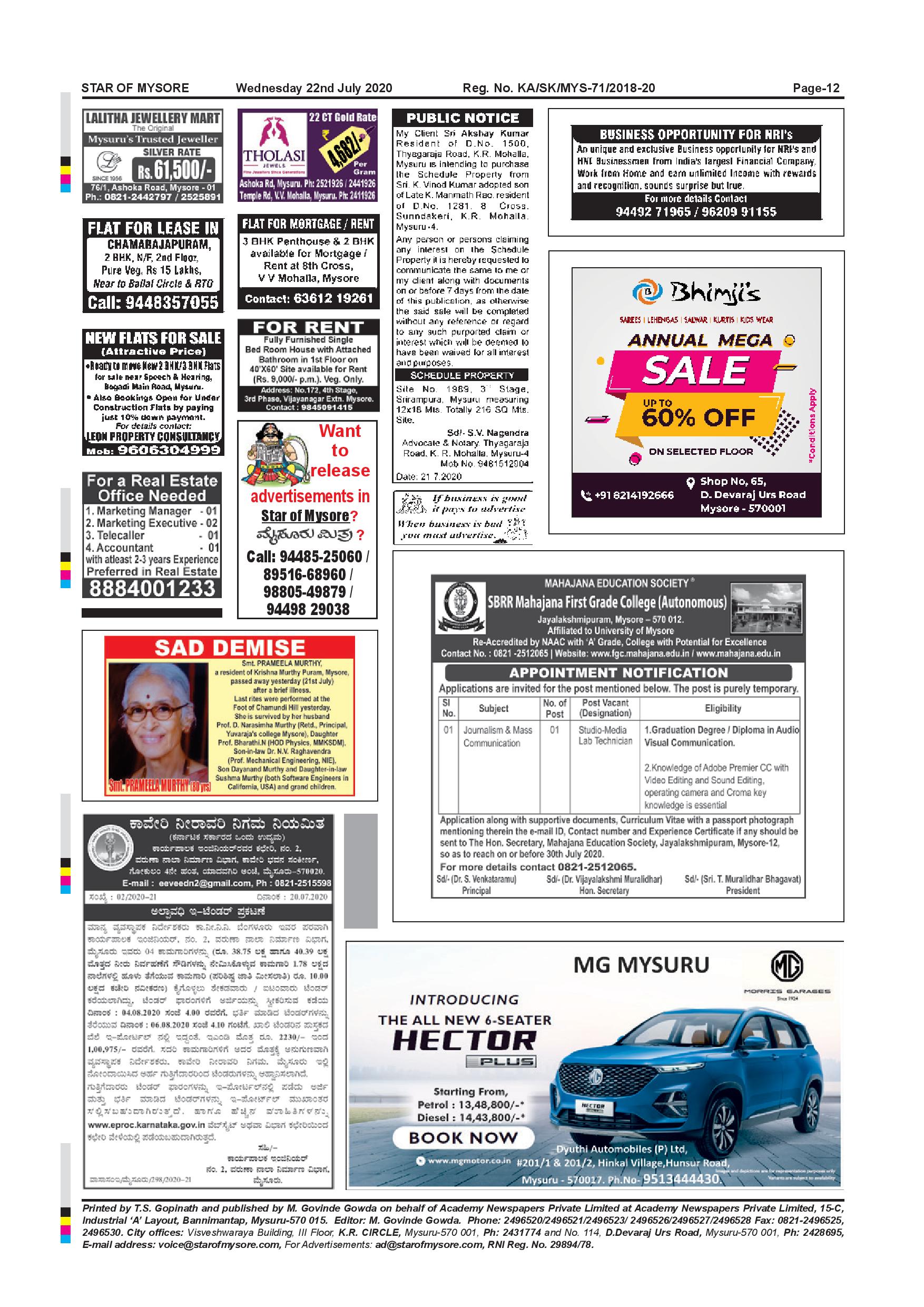 Star of Mysore Page: 12 July 22, 2020 << First << 12 >> Last >> Page 1Page 2Page 3Page 4Page 5Page 6Page 7Page 8Page 9Page 10Page 11Page 12 × Star of Mysore << First << 12 >> Last >> page-001page-002page-003page-004page-005page-006page-007page-008page-009page-010page-011page-012 page-012