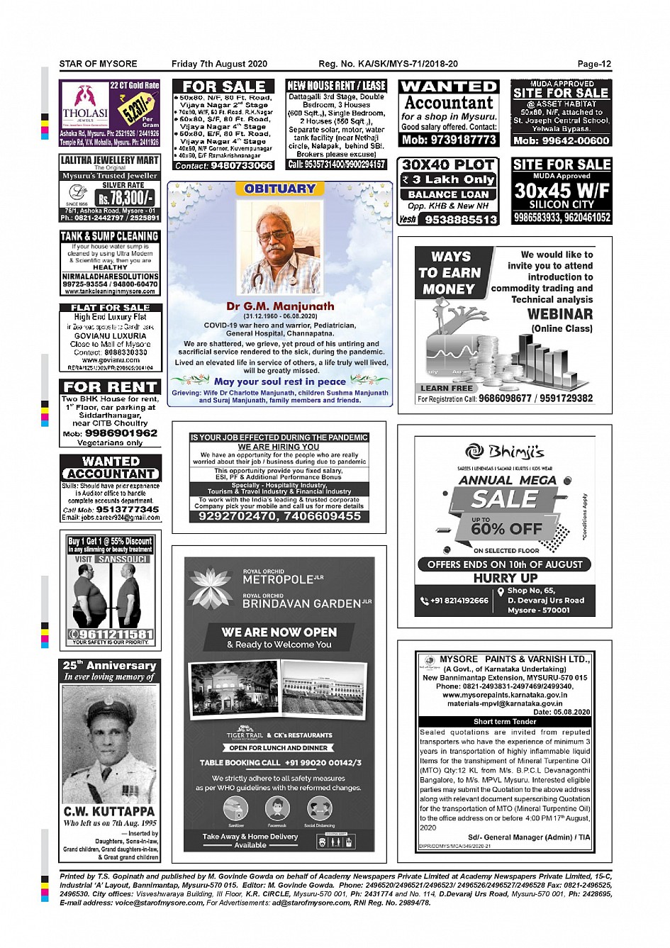 Star of Mysore Page: 12 August 07, 2020 << First << 12 >> Last >> Page 1Page 2Page 3Page 4Page 5Page 6Page 7Page 8Page 9Page 10Page 11Page 12 × Star of Mysore << First << 12 >> Last >> page-001page-002page-003page-004page-005page-006page-007page-008page-009page-010page-011page-012 page-012
