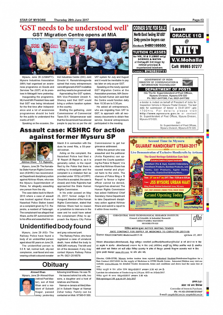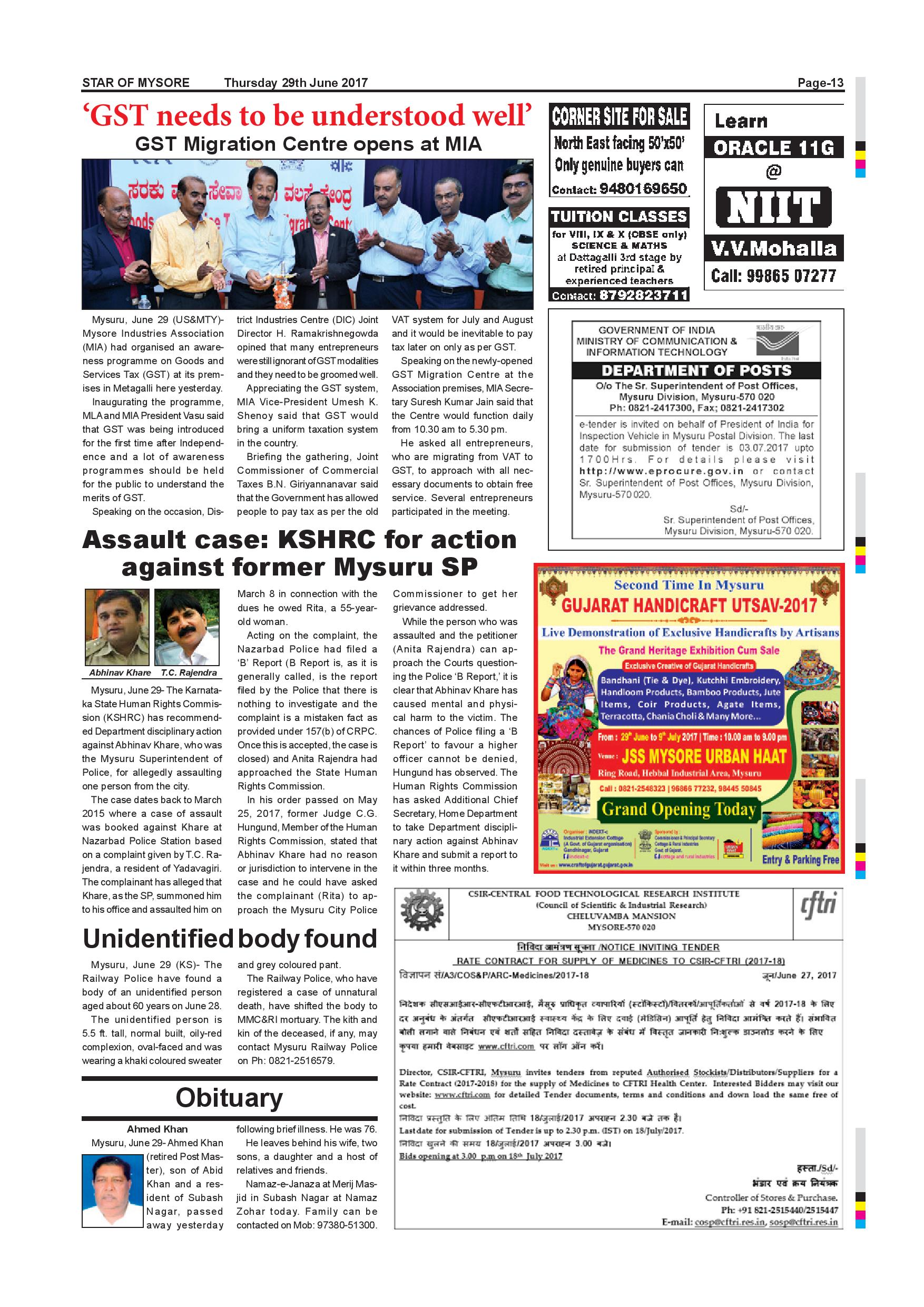 Star of Mysore Page: 13 June 29, 2017 << First << 13 >> Last >> Page 1Page 2Page 3Page 4Page 5Page 6Page 7Page 8Page 9Page 10Page 11Page 12Page 13Page 14Page 15Page 16 × Star of Mysore << First << 13 >> Last >> page-001page-002page-003page-004page-005page-006page-007page-008page-009page-010page-011page-012page-013page-014page-015page-016 page-013