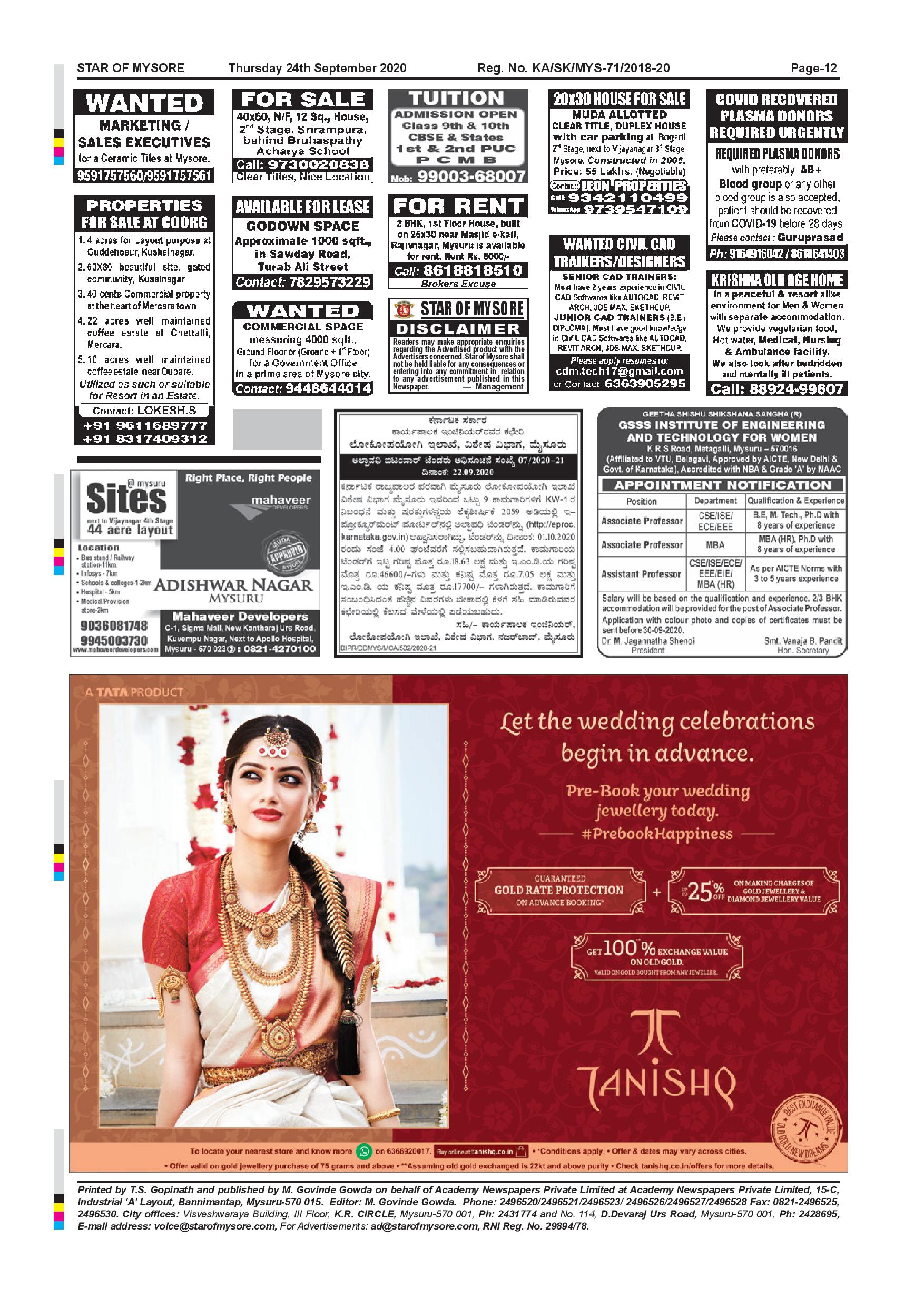 Star of Mysore Page: 12 September 24, 2020 << First << 12 >> Last >> Page 1Page 2Page 3Page 4Page 5Page 6Page 7Page 8Page 9Page 10Page 11Page 12 × Star of Mysore << First << 12 >> Last >> page-001page-002page-003page-004page-005page-006page-007page-008page-009page-010page-011page-012 page-012