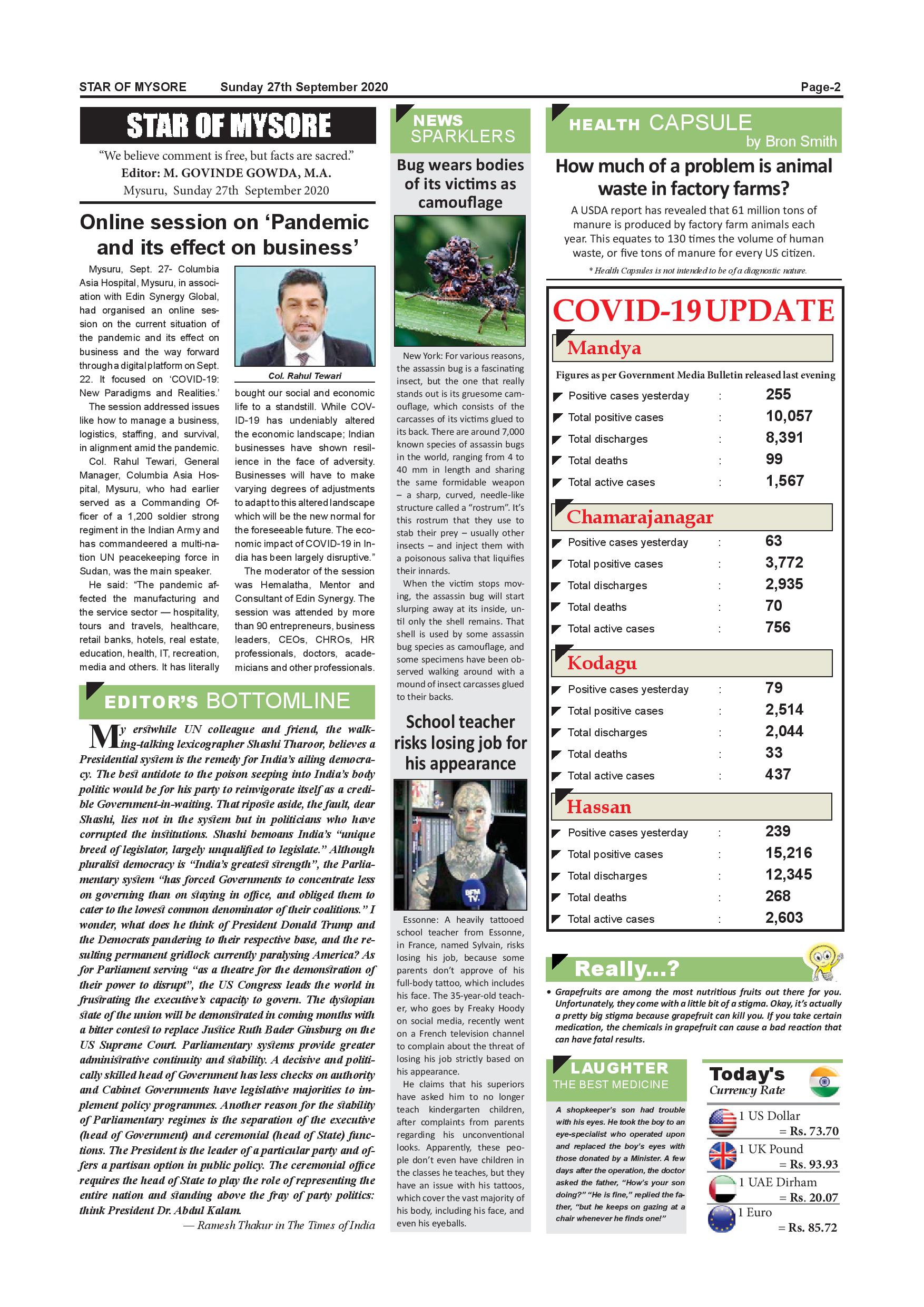 Star of Mysore Page: 2 September 27, 2020 << First << 2 >> Last >> Page 1Page 2Page 3Page 4Page 5Page 6Page 7Page 8Page 9Page 10Page 11Page 12 × Star of Mysore << First << 2 >> Last >> page-001page-002page-003page-004page-005page-006page-007page-008page-009page-010page-011page-012 page-002