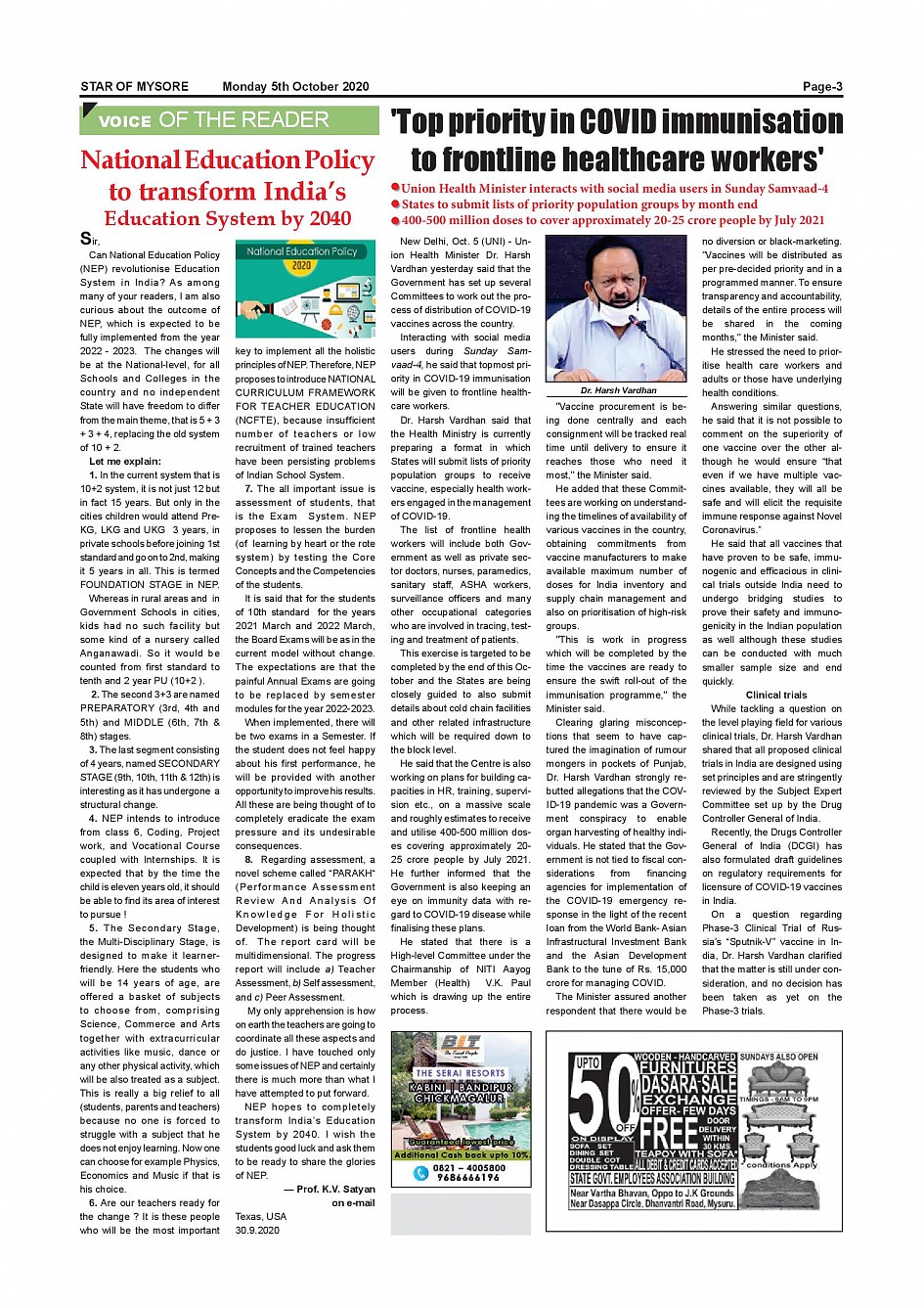 Star of Mysore Page: 3 October 05, 2020 << First << 3 >> Last >> Page 1Page 2Page 3Page 4Page 5Page 6Page 7Page 8Page 9Page 10Page 11Page 12 × Star of Mysore << First << 3 >> Last >> page-001page-002page-003page-004page-005page-006page-007page-008page-009page-010page-011page-012 page-003