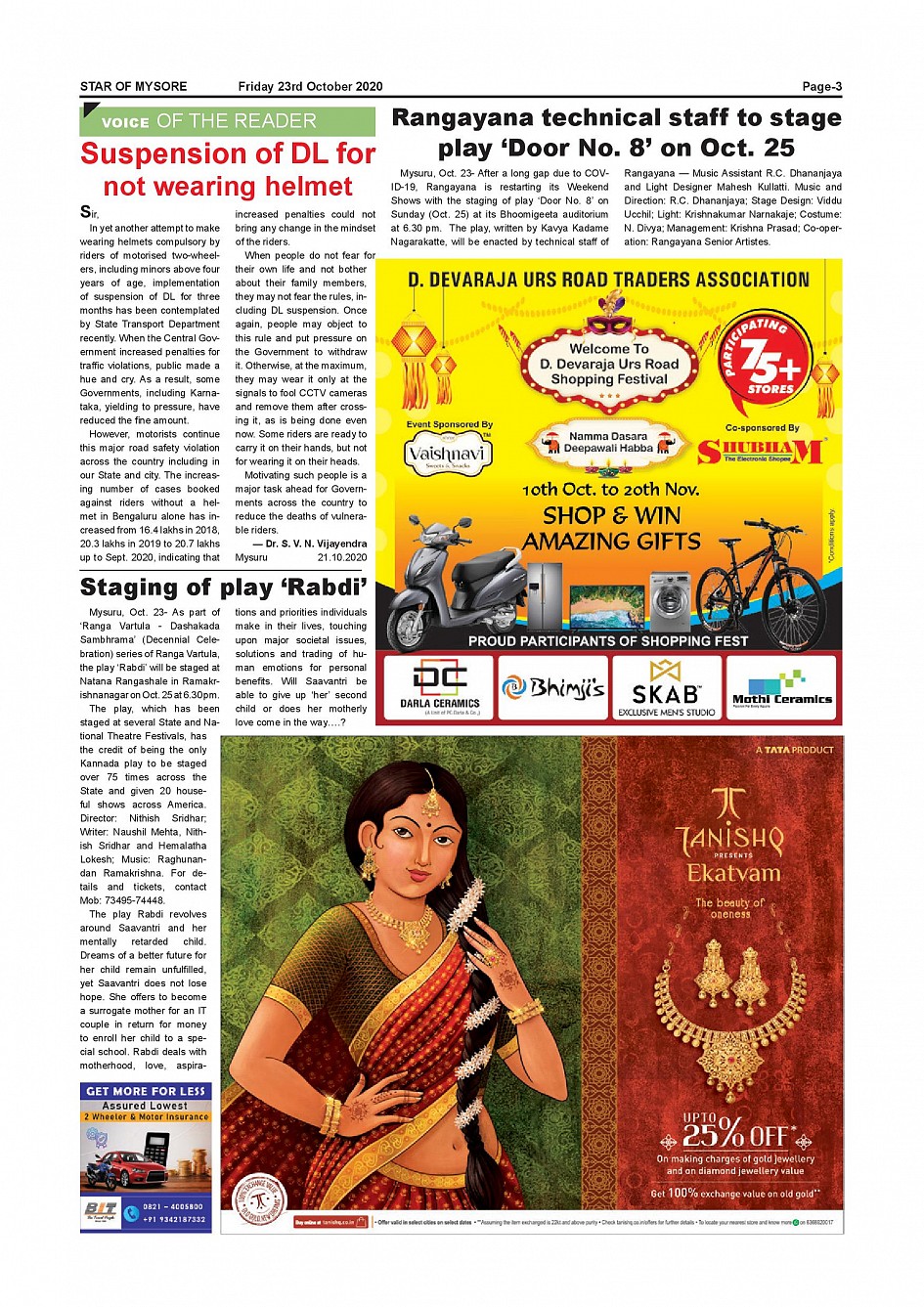 Star of Mysore Page: 3 October 23, 2020 << First << 3 >> Last >> Page 1Page 2Page 3Page 4Page 5Page 6Page 7Page 8Page 9Page 10Page 11 × Star of Mysore << First << 3 >> Last >> page-001page-002page-003page-004page-005page-006 & 007page-008page-009page-010page-011page-012 page-003