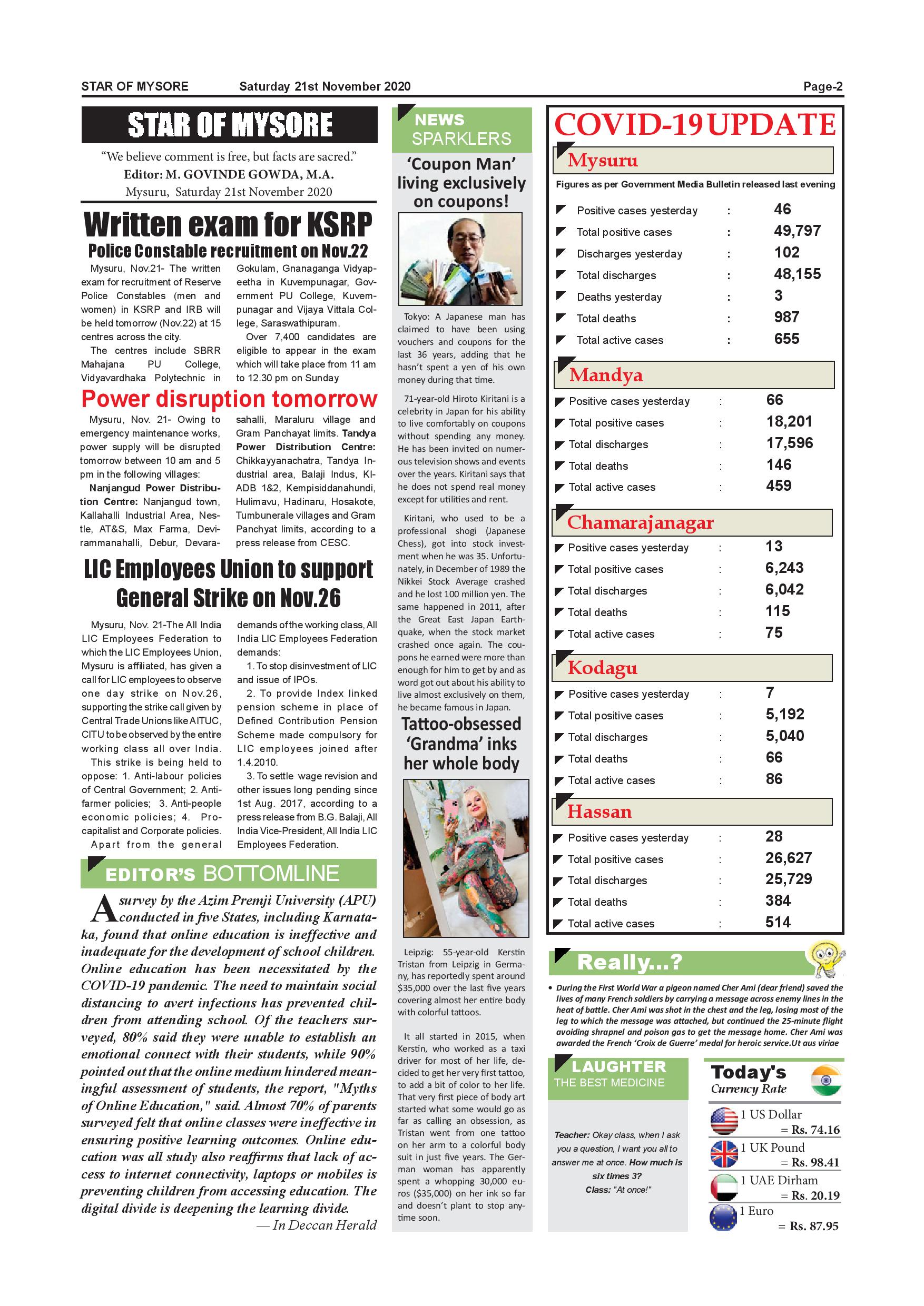 Star of Mysore Page: 2 November 21, 2020 << First << 2 >> Last >> Page 1Page 2Page 3Page 4Page 5Page 6Page 7Page 8Page 9Page 10Page 11Page 12 × Star of Mysore << First << 2 >> Last >> Page-001Page-002Page-003Page-004Page-005Page-006Page-007Page-008Page-009Page-010Page-011Page-012 Page-002