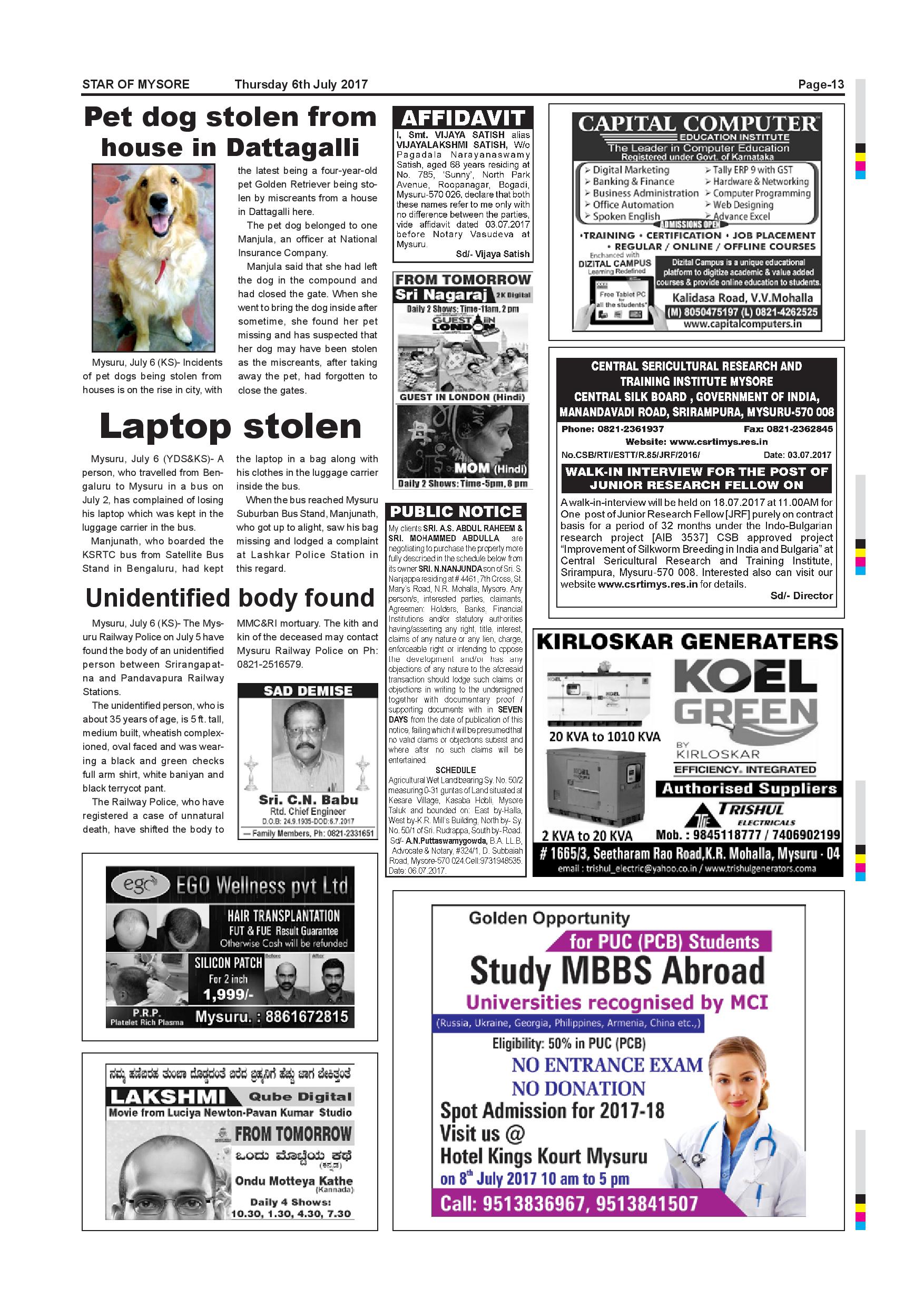 Star of Mysore Page: 12 July 06, 2017 << First << 12 >> Last >> Page 1Page 2Page 3Page 4Page 5Page 6Page 7Page 8Page 9Page 10Page 11Page 12Page 13Page 14Page 15 × Star of Mysore << First << 12 >> Last >> page-001page-002page-003page-004page-005page-006page-007page-008 & 009page-010page-011page-012page-013page-014page-015page-016 page-013