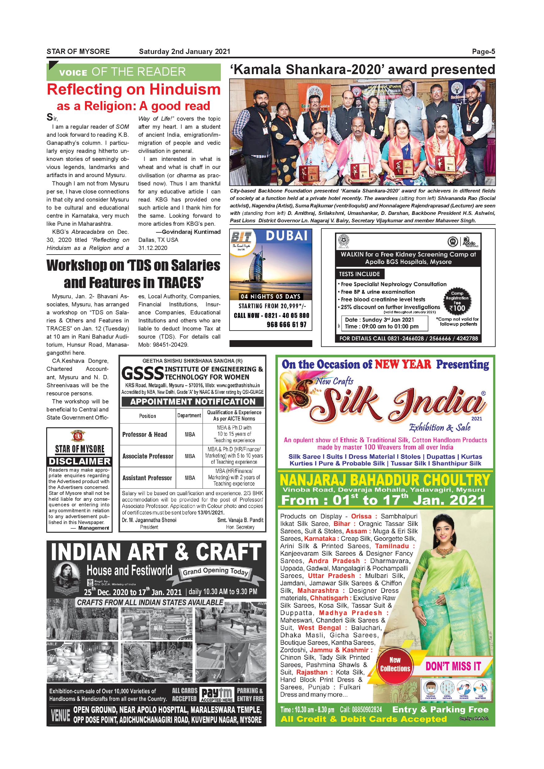 Star of Mysore Page: 5 January 02, 2021 << First << 5 >> Last >> Page 1Page 2Page 3Page 4Page 5Page 6Page 7Page 8Page 9Page 10Page 11Page 12 × Star of Mysore << First << 5 >> Last >> Page-001Page-002Page-003Page-004Page-005Page-006Page-007Page-008Page-009Page-010Page-011Page-012 Page-005