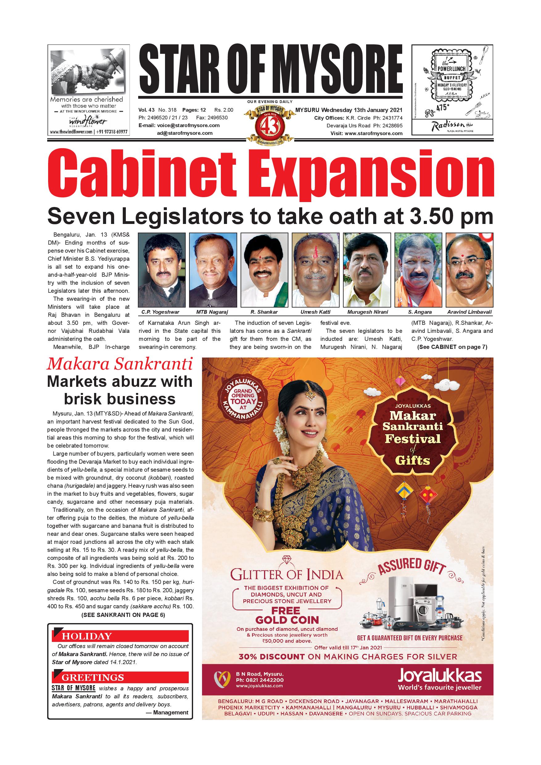 Star of Mysore January 13, 2021 << First << 1 >> Last >> Page 1Page 2Page 3Page 4Page 5Page 6Page 7Page 8Page 9Page 10Page 11Page 12 × Star of Mysore << First << 1 >> Last >> page-001page-002page-003page-004page-005page-006page-007page-008page-009page-010page-011page-012 page-001