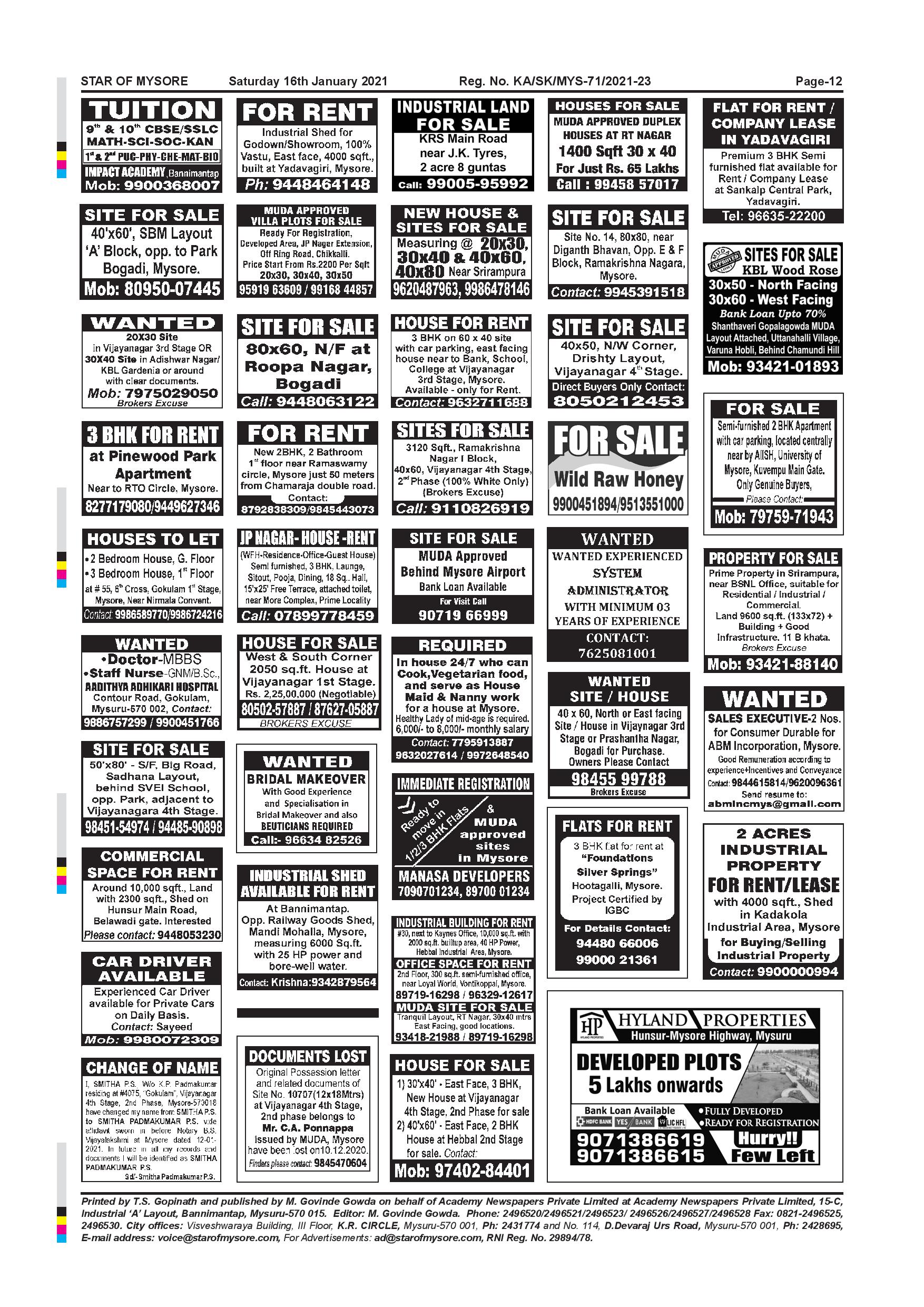 Star of Mysore Page: 12 January 16, 2021 << First << 12 >> Last >> Page 1Page 2Page 3Page 4Page 5Page 6Page 7Page 8Page 9Page 10Page 11Page 12 × Star of Mysore << First << 12 >> Last >> page-001page-002page-003page-004page-005page-006page-007page-008page-009page-010page-011page-012 page-012