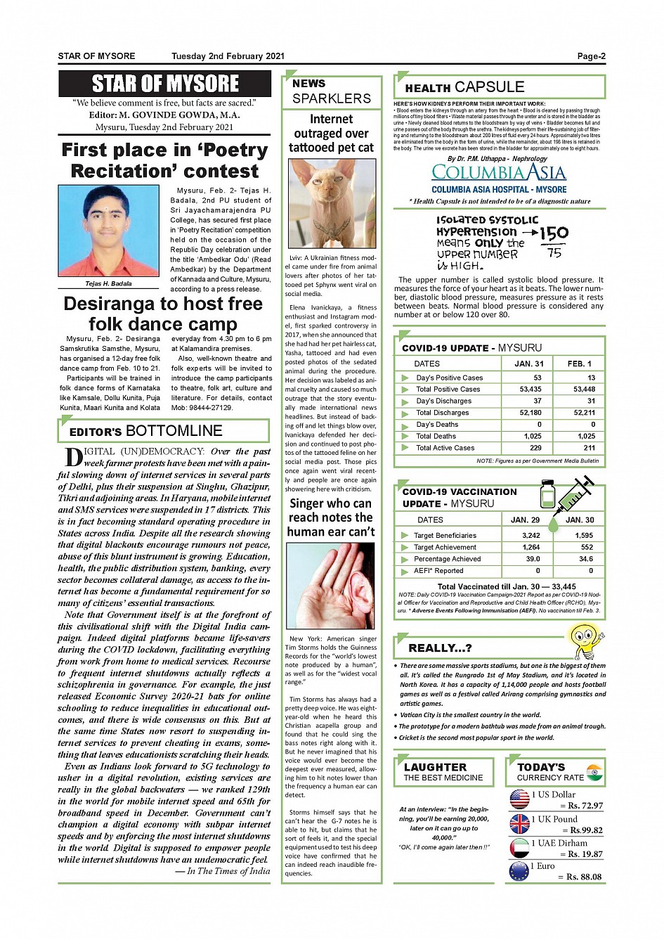 Star of Mysore Page: 2 February 02, 2021 << First << 2 >> Last >> Page 1Page 2Page 3Page 4Page 5Page 6Page 7Page 8Page 9Page 10Page 11Page 12 × Star of Mysore << First << 2 >> Last >> page-001page-002page-003page-004page-005page-006page-007page-008page-009page-010page-011page-012 page-002