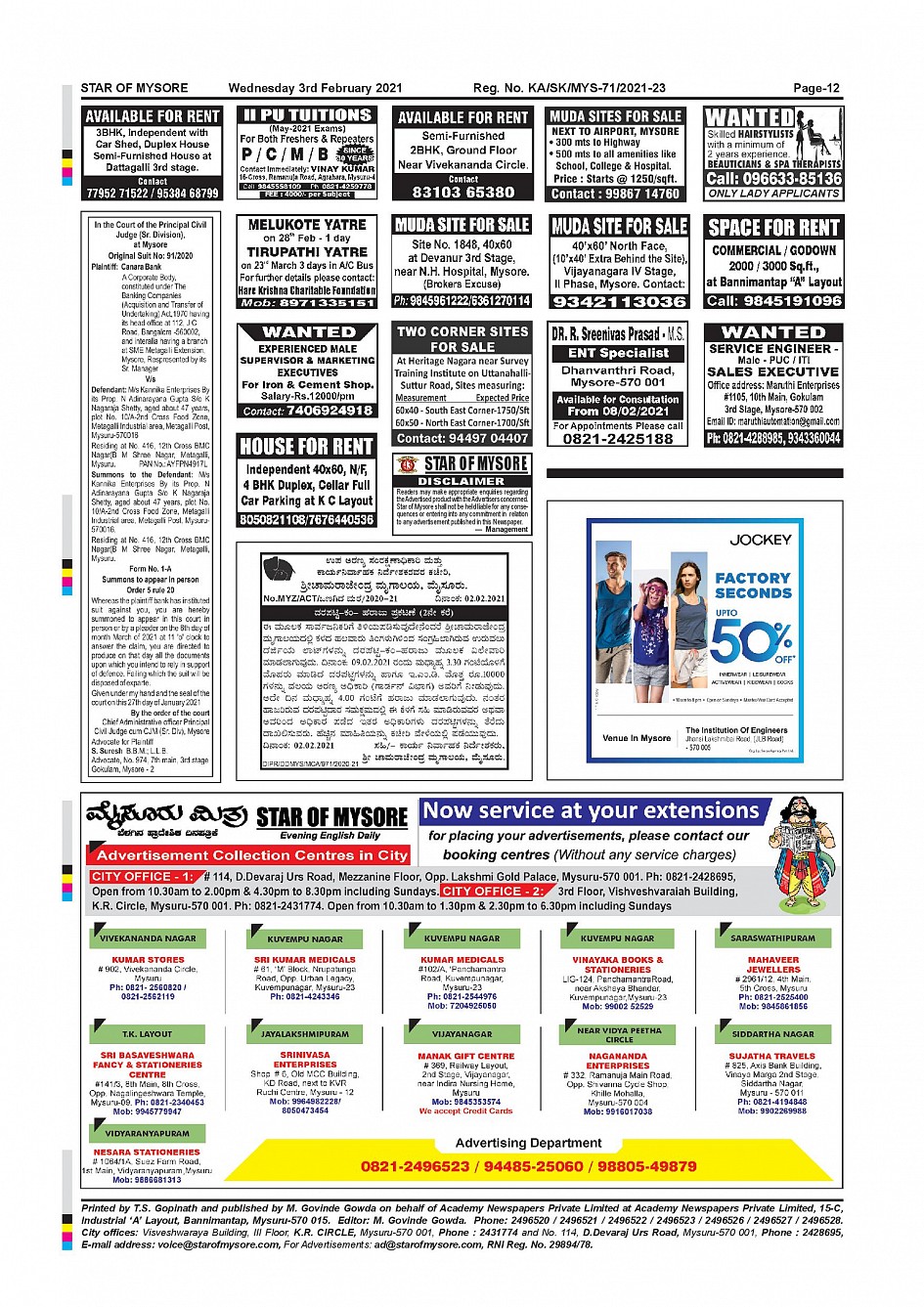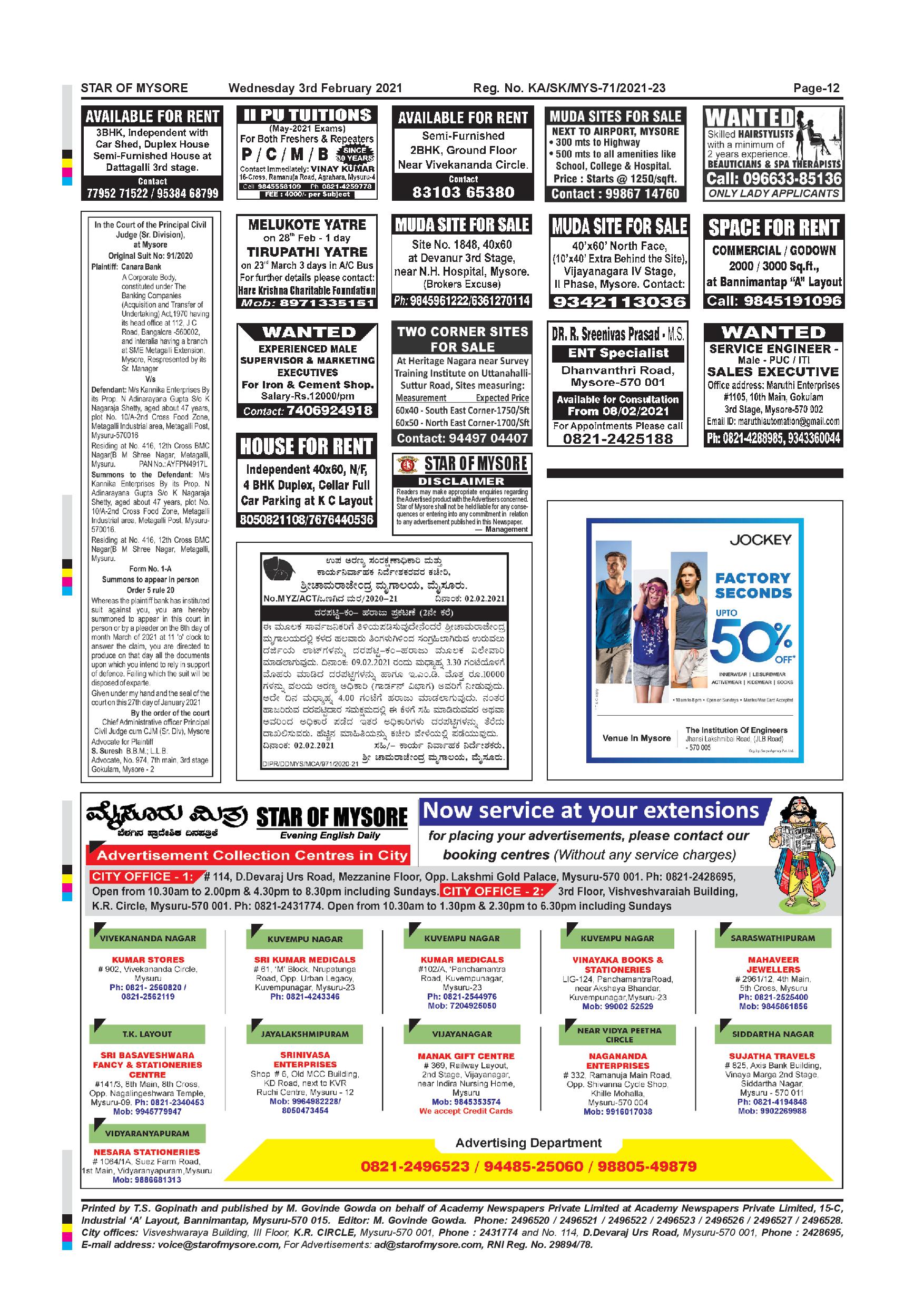 Star of Mysore Page: 12 February 03, 2021 << First << 12 >> Last >> Page 1Page 2Page 3Page 4Page 5Page 6Page 7Page 8Page 9Page 10Page 11Page 12 × Star of Mysore << First << 12 >> Last >> page-001page-002page-003page-004page-005page-006page-007page-008page-009page-010page-011page-012 page-012