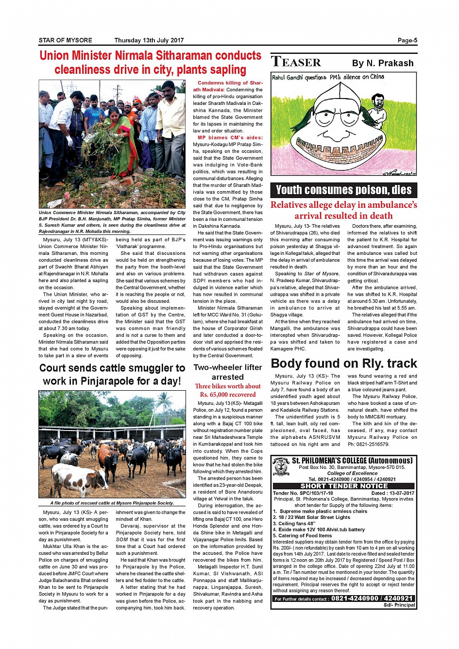 Star of Mysore Page: 5 July 13, 2017 << First << 5 >> Last >> Page 1Page 2Page 3Page 4Page 5Page 6Page 7Page 8Page 9Page 10Page 11Page 12Page 13Page 14Page 15Page 16 × Star of Mysore << First << 5 >> Last >> page-001page-002page-003page-004page-005page-006page-007page-008page-009page-010page-011page-012page-013page-014page-015page-016 page-005