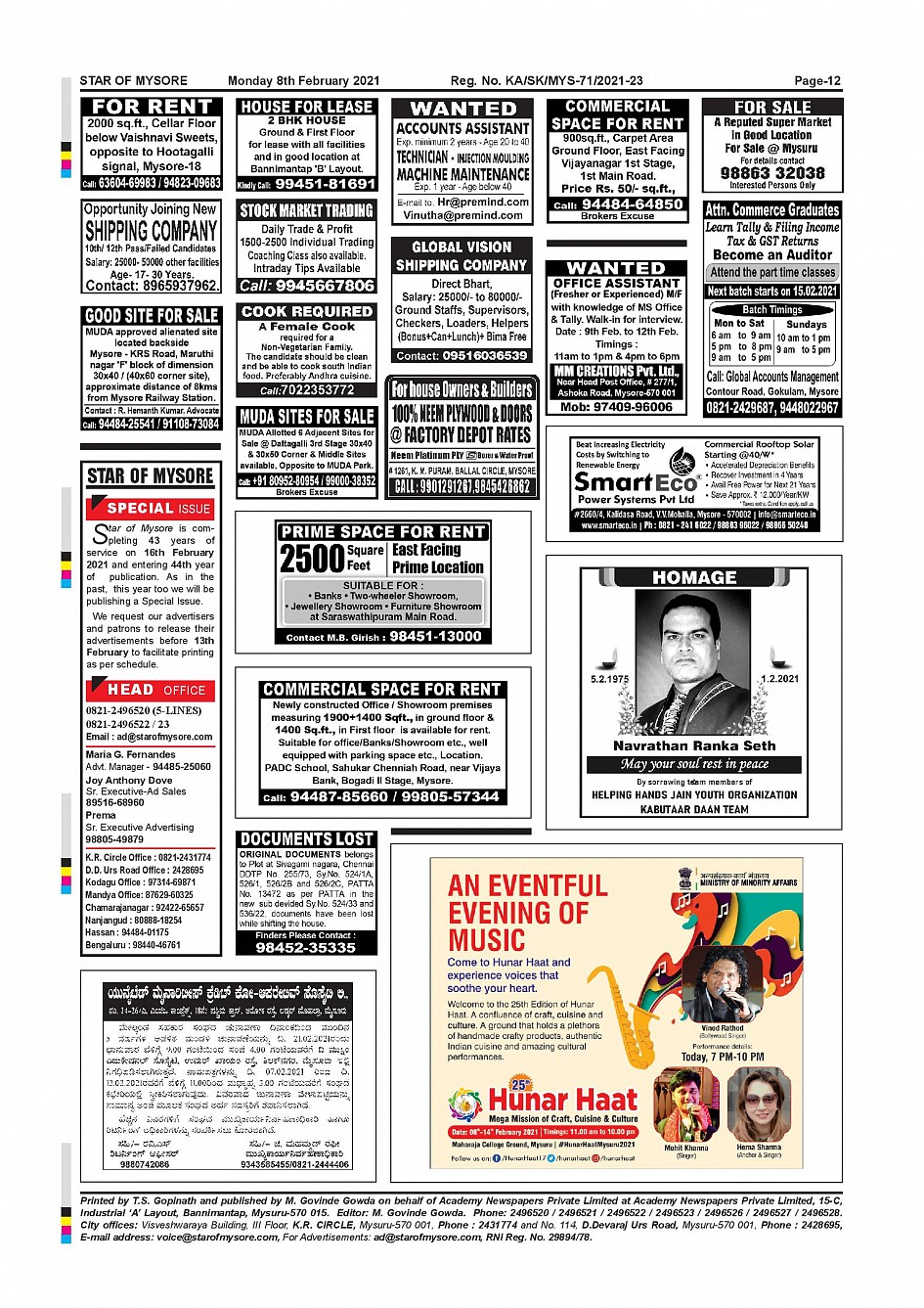 Star of Mysore Page: 12 February 08, 2021 << First << 12 >> Last >> Page 1Page 2Page 3Page 4Page 5Page 6Page 7Page 8Page 9Page 10Page 11Page 12 × Star of Mysore << First << 12 >> Last >> page-001page-002page-003page-004page-005page-006page-007page-008page-009page-010page-011page-012 page-012