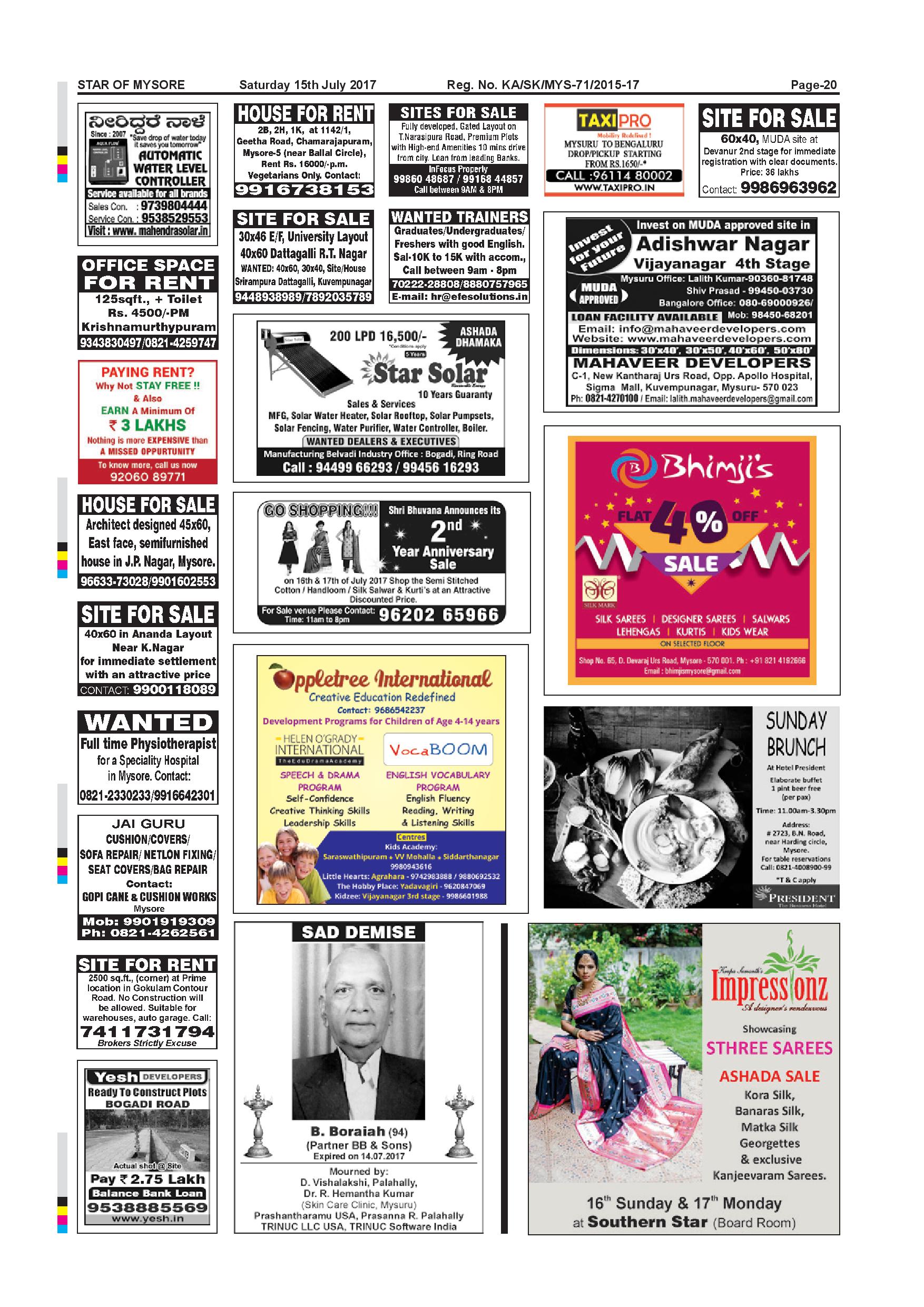 Star of Mysore Page: 19 July 15, 2017 << First << 19 >> Last >> Page 1Page 2Page 3Page 4Page 5Page 6Page 7Page 8Page 9Page 10Page 11Page 12Page 13Page 14Page 15Page 16Page 17Page 18Page 19 × Star of Mysore << First << 19 >> Last >> page-001page-002page-003page-004page-005page-006page-007page-008page-009page-010 & 011page-012page-013page-014page-015page-016page-017page-018page-019page-020 page-020