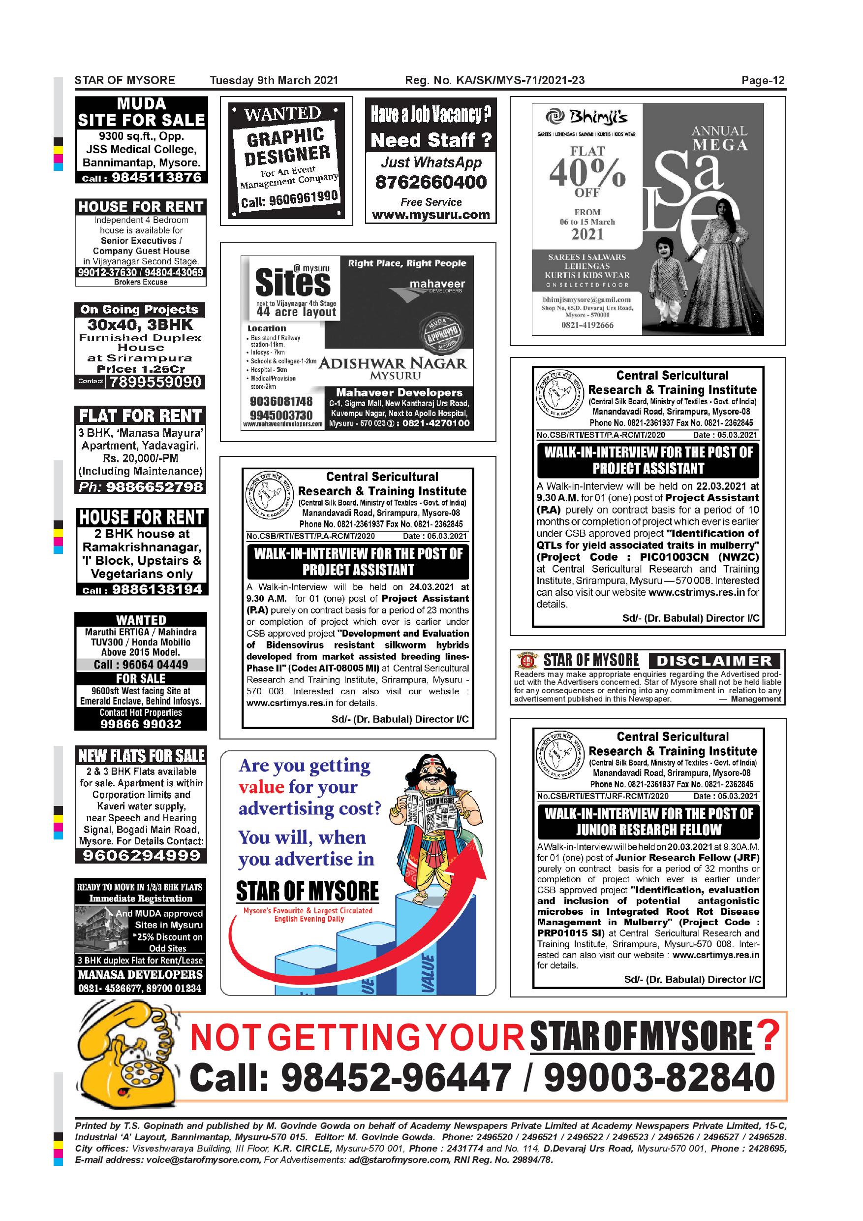 Star of Mysore Page: 12 March 09, 2021 << First << 12 >> Last >> Page 1Page 2Page 3Page 4Page 5Page 6Page 7Page 8Page 9Page 10Page 11Page 12 × Star of Mysore << First << 12 >> Last >> page-001page-002page-003page-004page-005page-006page-007page-008page-009page-010page-011page-012 page-012