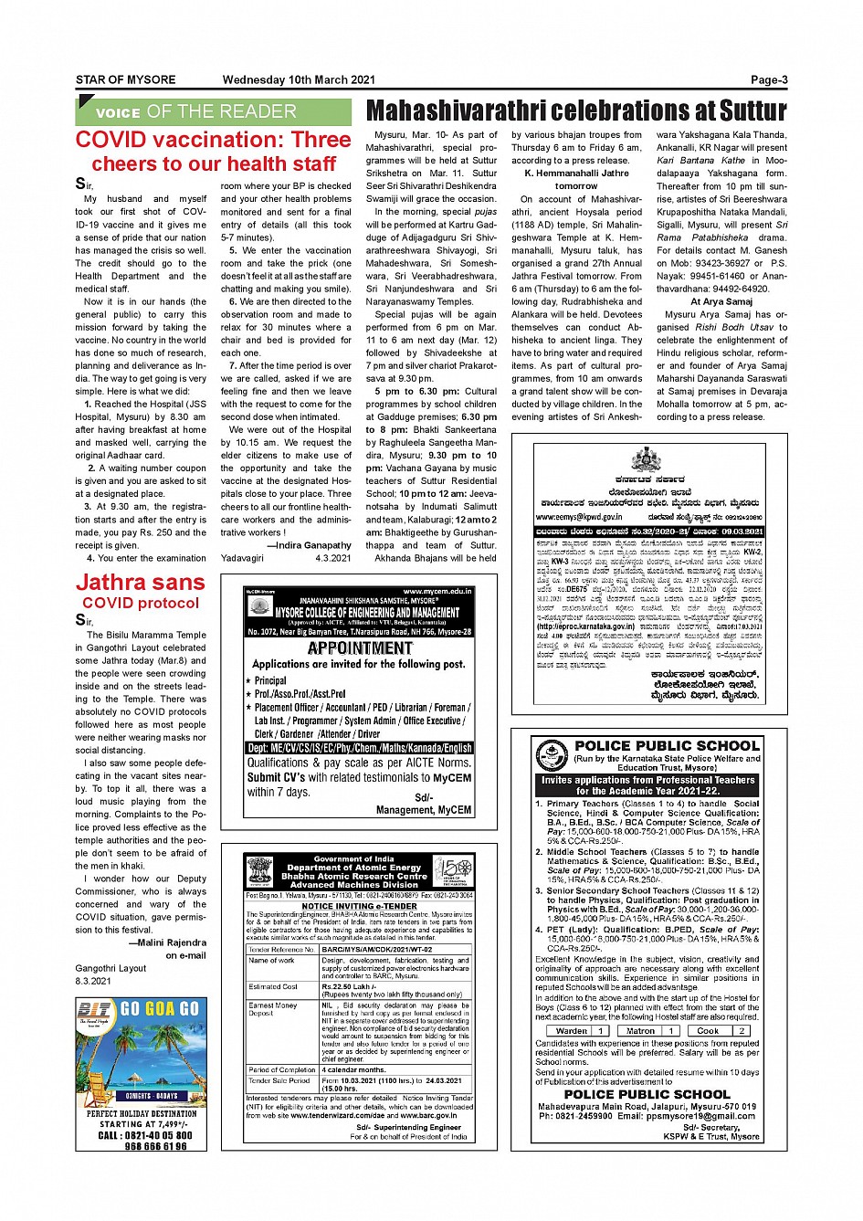 Star of Mysore Page: 3 March 10, 2021 << First << 3 >> Last >> Page 1Page 2Page 3Page 4Page 5Page 6Page 7Page 8Page 9Page 10Page 11Page 12 × Star of Mysore << First << 3 >> Last >> page-001page-002page-003page-004page-005page-006page-007page-008page-009page-010page-011page-012 page-003