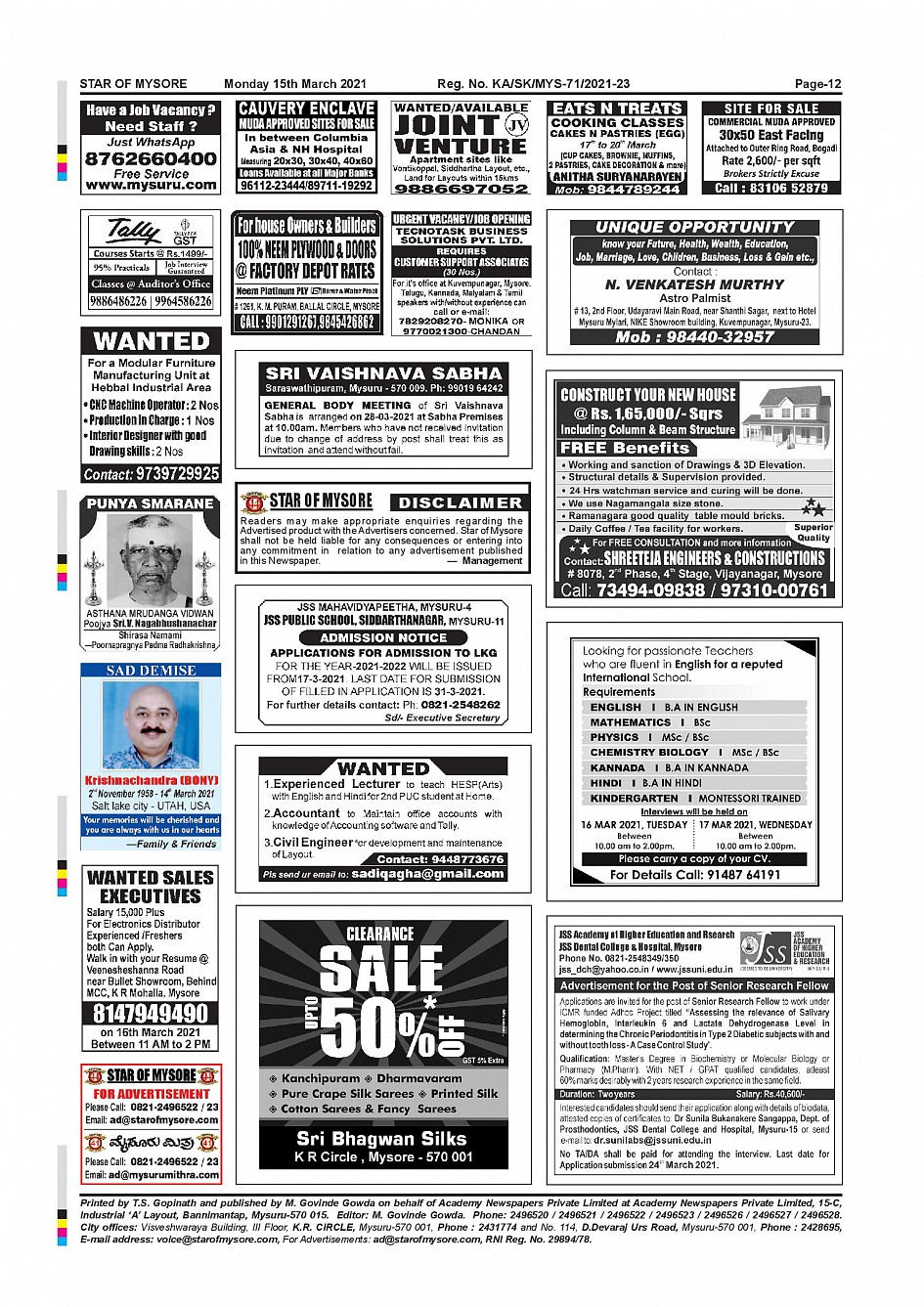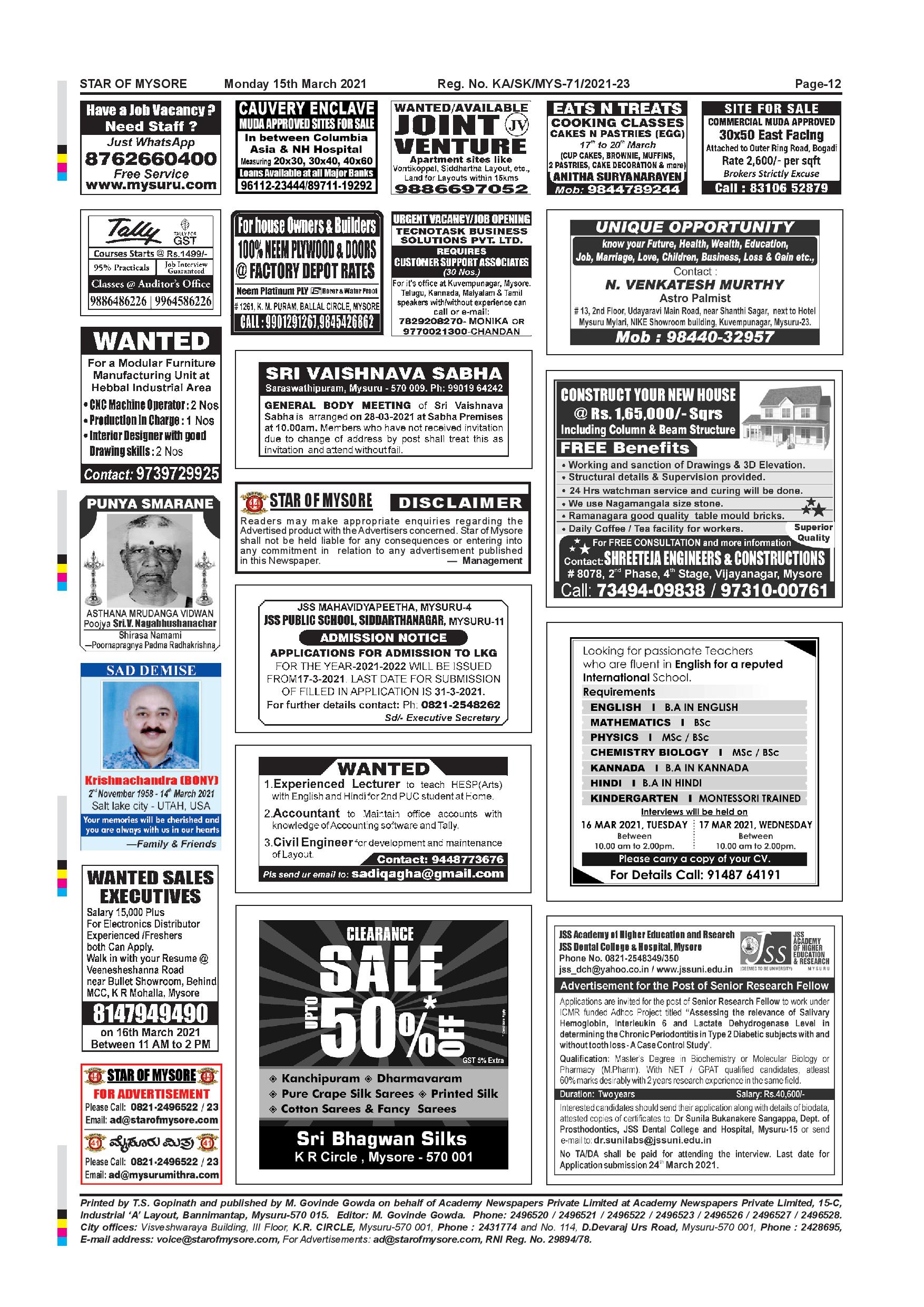 Star of Mysore Page: 12 March 15, 2021 << First << 12 >> Last >> Page 1Page 2Page 3Page 4Page 5Page 6Page 7Page 8Page 9Page 10Page 11Page 12 × Star of Mysore << First << 12 >> Last >> Page-001Page-002Page-003Page-004Page-005Page-006Page-007Page-008Page-009Page-010Page-011Page-012 Page-012