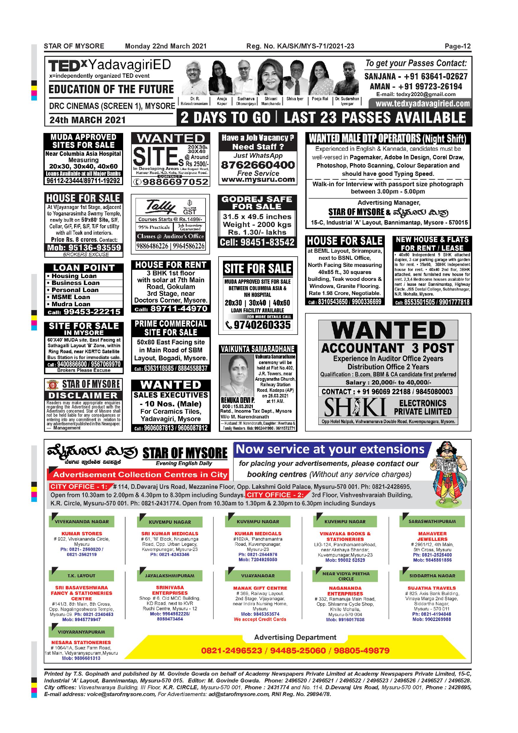 Star of Mysore Page: 12 March 22, 2021 << First << 12 >> Last >> Page 1Page 2Page 3Page 4Page 5Page 6Page 7Page 8Page 9Page 10Page 11Page 12 × Star of Mysore << First << 12 >> Last >> Page-001Page-002Page-003Page-004Page-005Page-006Page-007Page-008Page-009Page-010Page-011Page-012 Page-012