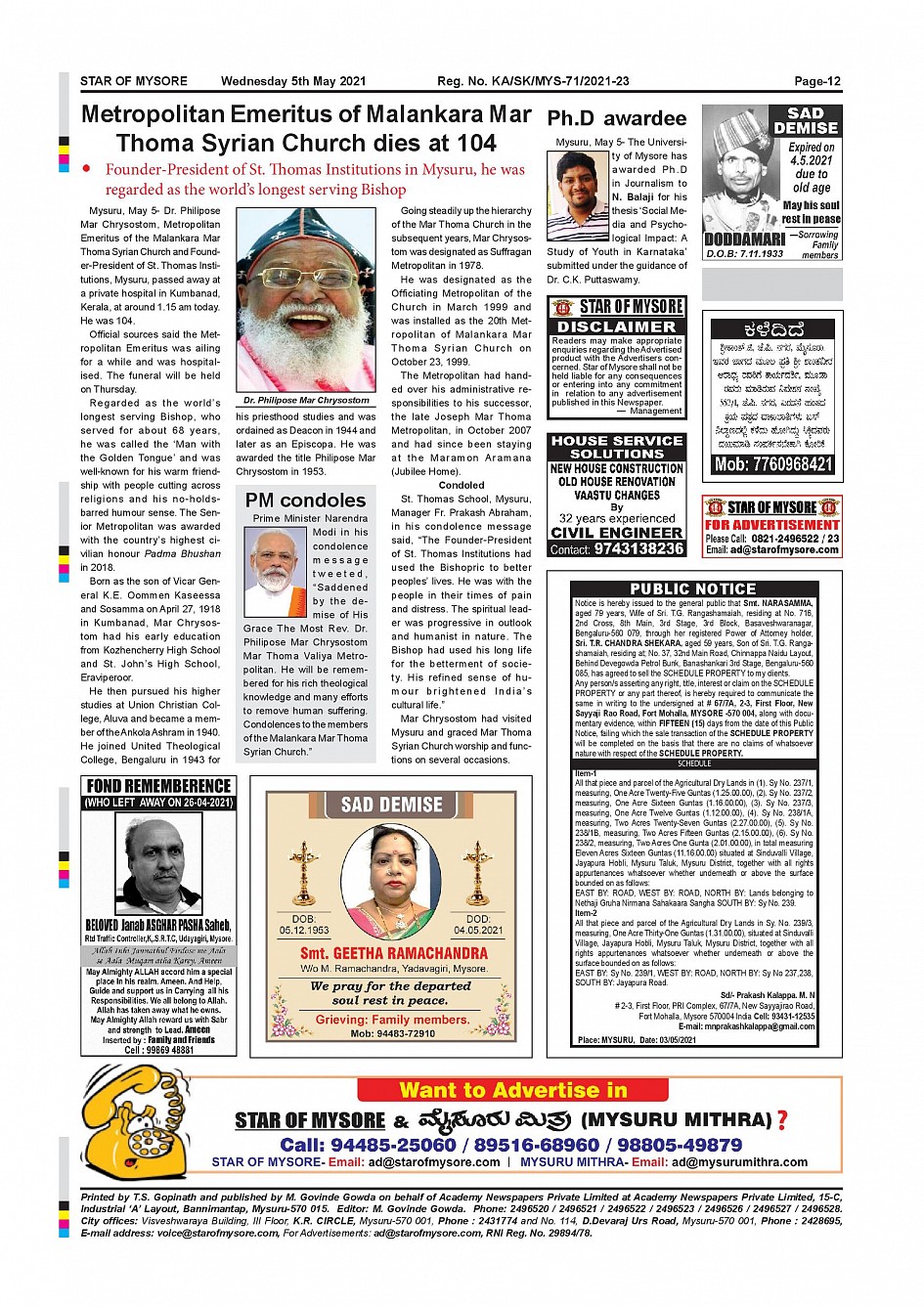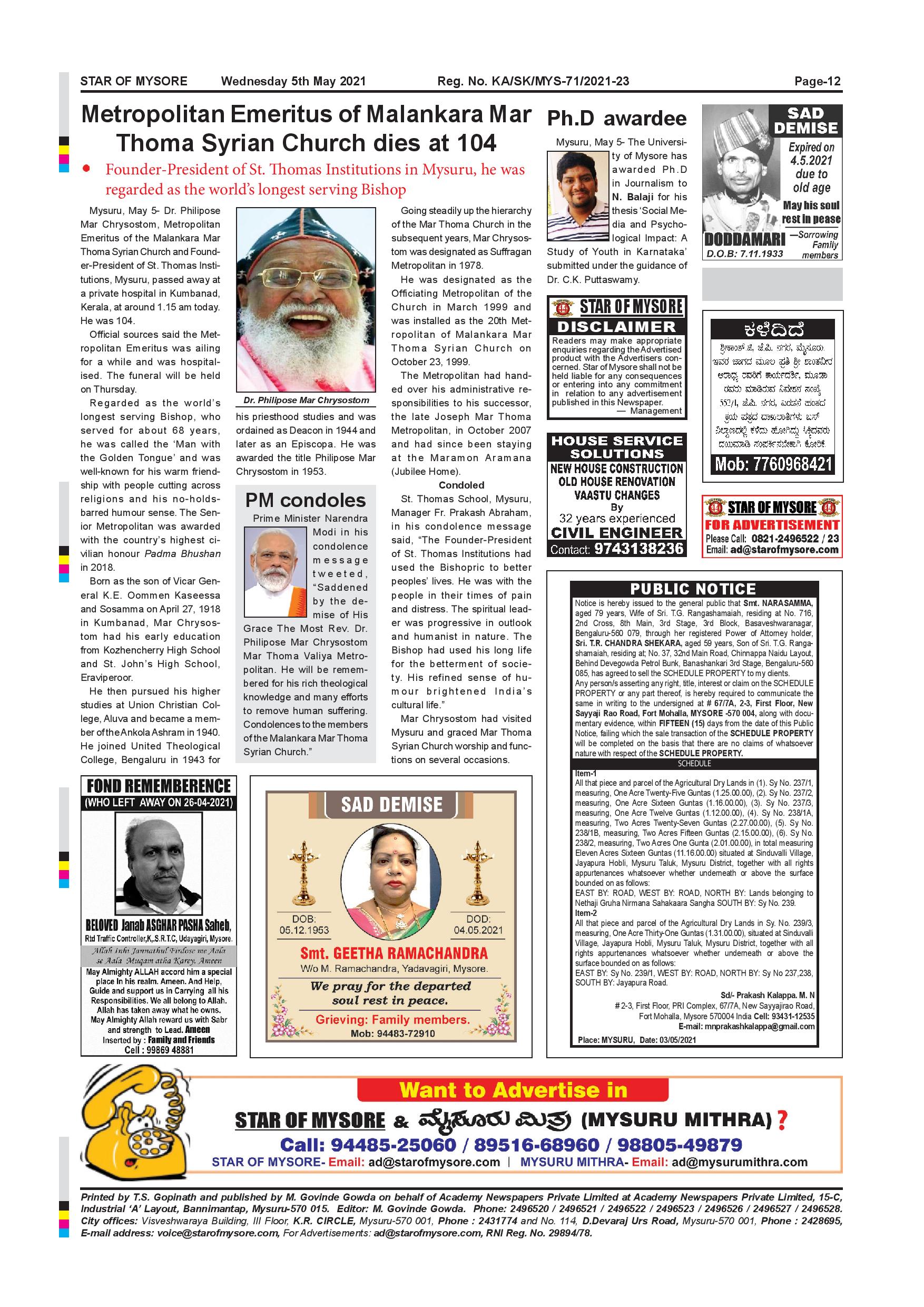 Star of Mysore Page: 12 May 05, 2021 << First << 12 >> Last >> Page 1Page 2Page 3Page 4Page 5Page 6Page 7Page 8Page 9Page 10Page 11Page 12 × Star of Mysore << First << 12 >> Last >> page-001page-002page-003page-004page-005page-006page-007page-008page-009page-010page-011page-012 page-012