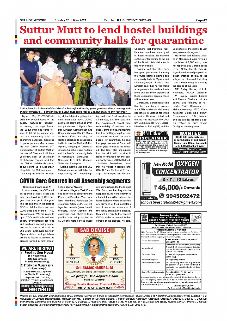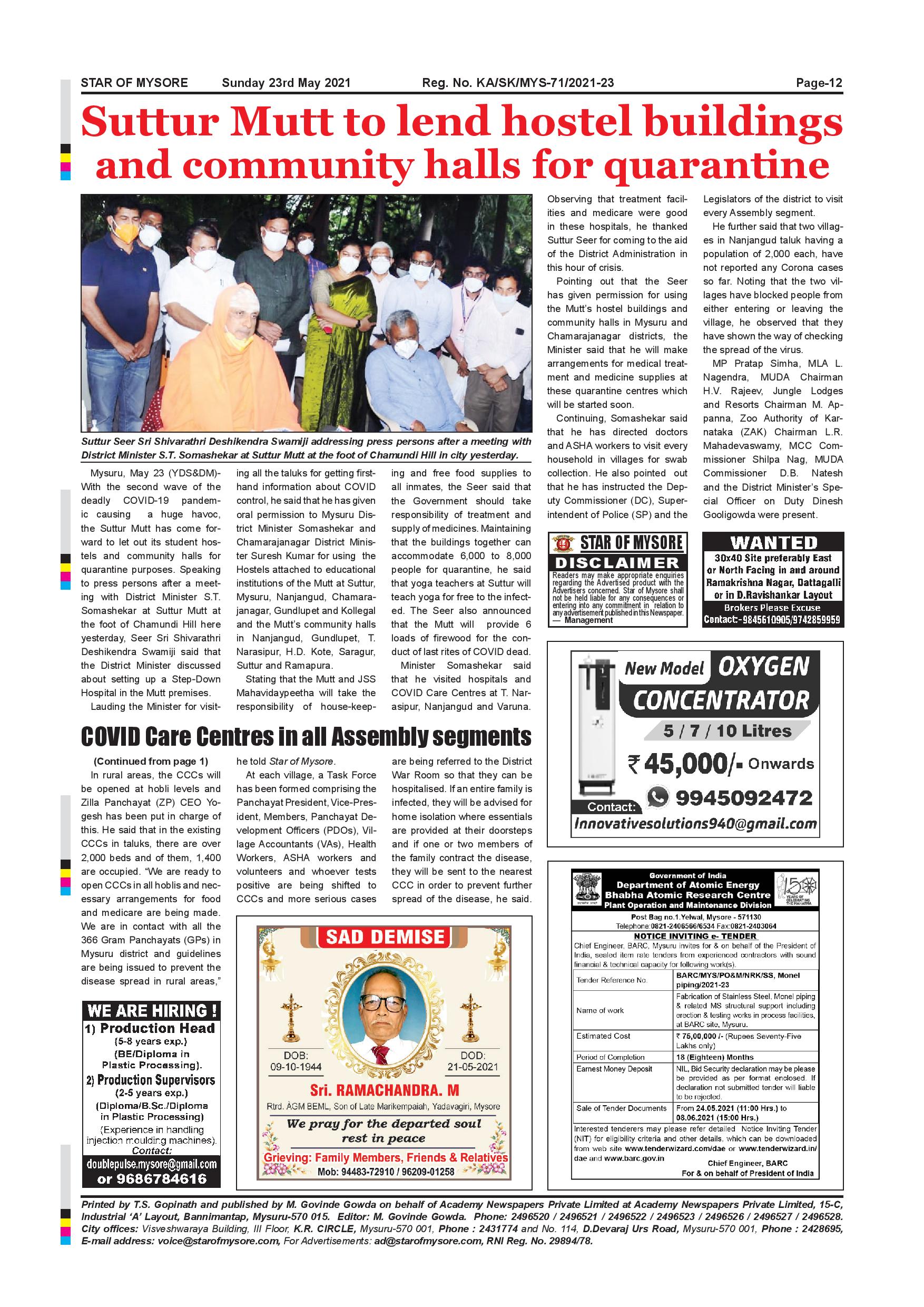 Star of Mysore Page: 12 May 23, 2021 << First << 12 >> Last >> Page 1Page 2Page 3Page 4Page 5Page 6Page 7Page 8Page 9Page 10Page 11Page 12 × Star of Mysore << First << 12 >> Last >> Page-001Page-002Page-003Page-004Page-005Page-006Page-007Page-008Page-009Page-010Page-011Page-012 Page-012