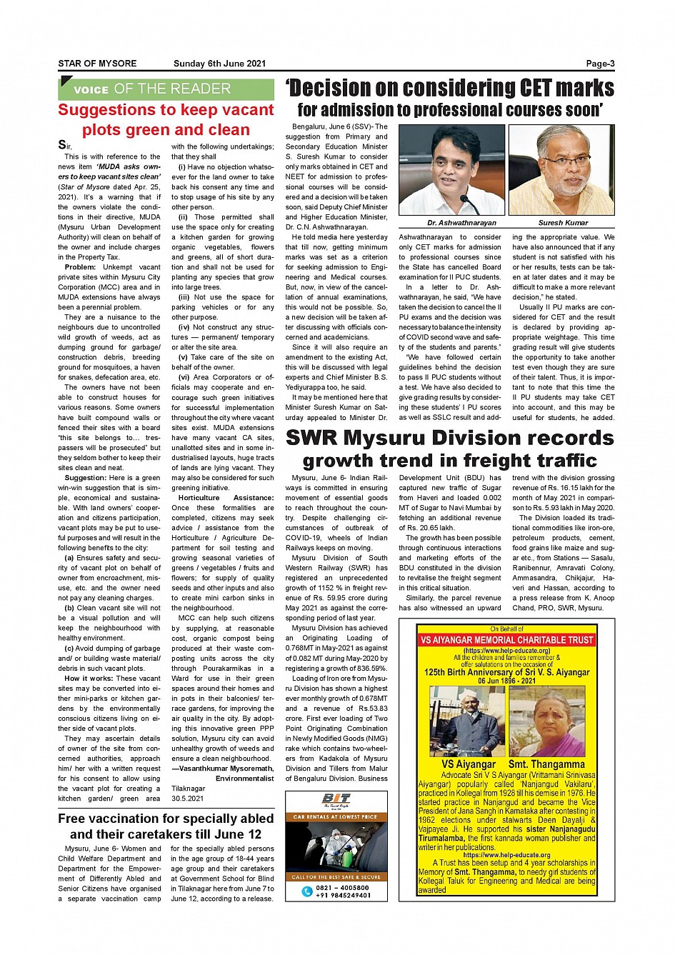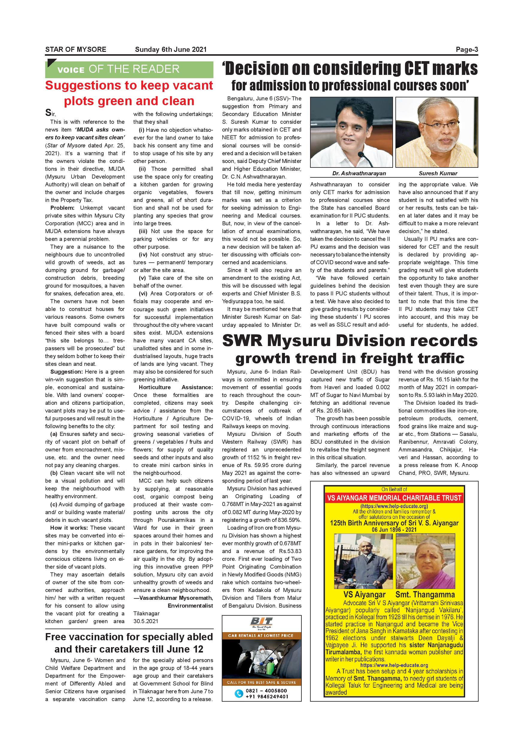 Star of Mysore Page: 3 June 06, 2021 << First << 3 >> Last >> Page 1Page 2Page 3Page 4Page 5Page 6Page 7Page 8Page 9Page 10Page 11Page 12 × Star of Mysore << First << 3 >> Last >> page-001page-002page-003page-004page-005Page-006page-007page-008page-009page-010page-011page-012 page-003