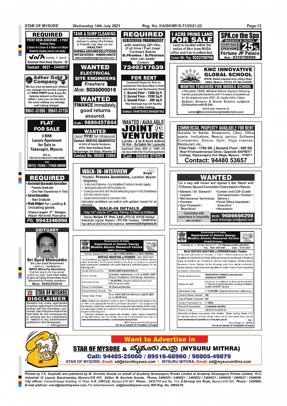 Star of Mysore Page: 12 July 14, 2021 << First << 12 >> Last >> Page 1Page 2Page 3Page 4Page 5Page 6Page 7Page 8Page 9Page 10Page 11Page 12 × Star of Mysore << First << 12 >> Last >> Page-001Page-002Page-003Page-004Page-005Page-006Page-007Page-008Page-009Page-010Page-011Page-012 Page-012