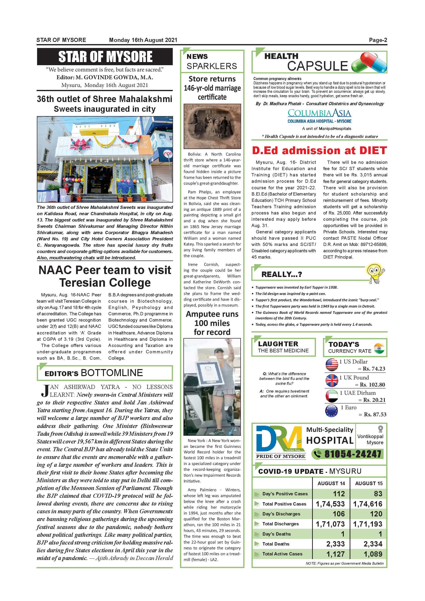 Star of Mysore Page: 2 August 16, 2021 << First << 2 >> Last >> Page 1Page 2Page 3Page 4Page 5Page 6Page 7Page 8Page 9Page 10Page 11Page 12 × Star of Mysore << First << 2 >> Last >> Page-001Page-002Page-003Page-004Page-005Page-006Page-007Page-008Page-009Page-010Page-011Page-012 Page-002