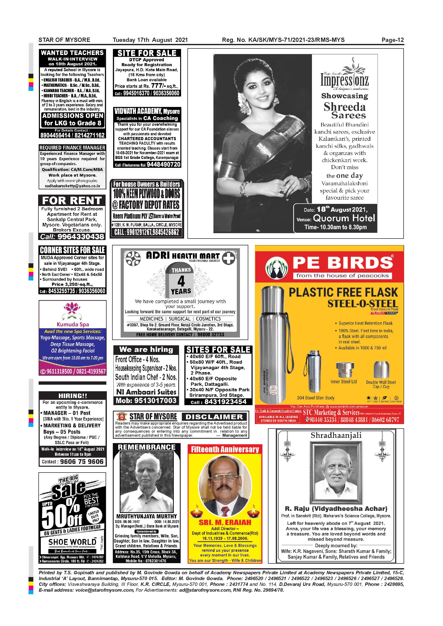 Star of Mysore Page: 12 August 17, 2021 << First << 12 >> Last >> Page 1Page 2Page 3Page 4Page 5Page 6Page 7Page 8Page 9Page 10Page 11Page 12 × Star of Mysore << First << 12 >> Last >> page-001page-002page-003page-004page-005page-006page-007page-008page-009page-010page-011page-012 page-012