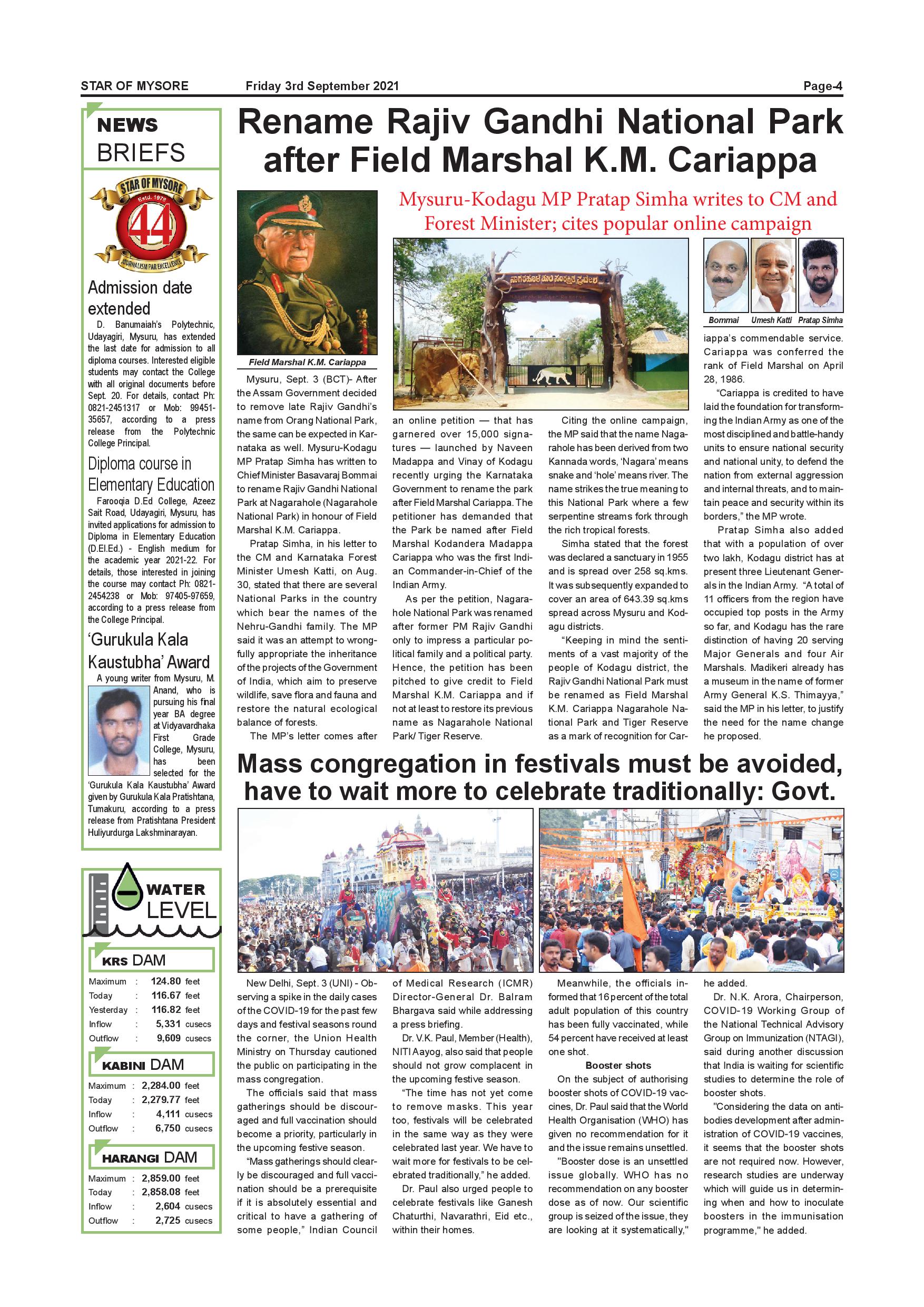 Star of Mysore Page: 4 September 03, 2021 << First << 4 >> Last >> Page 1Page 2Page 3Page 4Page 5Page 6Page 7Page 8Page 9Page 10Page 11 × Star of Mysore << First << 4 >> Last >> Page-001Page-002Page-003Page-004Page-005Page-006-007Page-008Page-009Page-010Page-011Page-012 Page-004