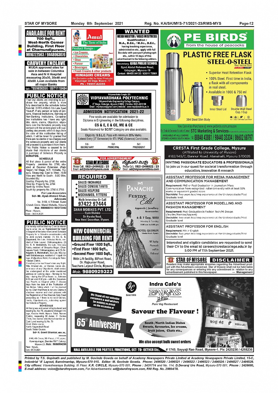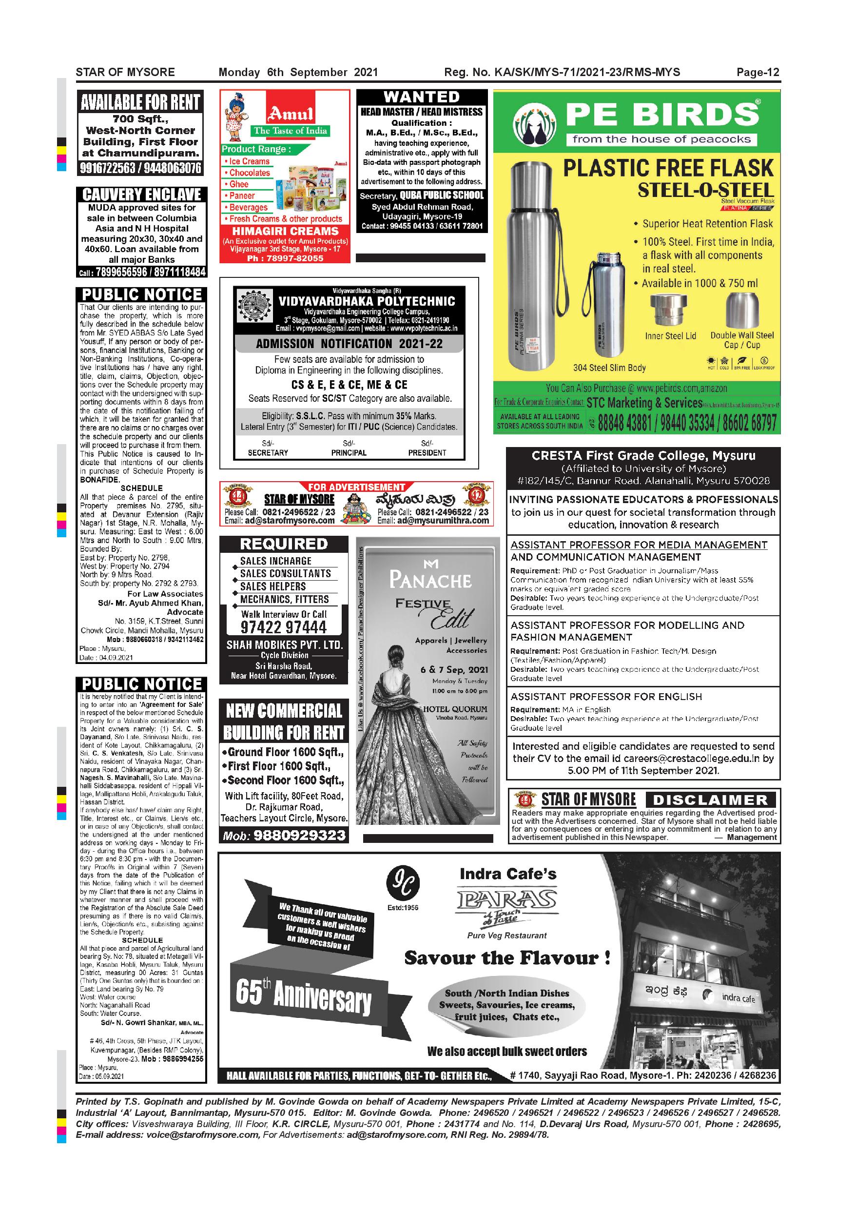 Star of Mysore Page: 12 September 06, 2021 << First << 12 >> Last >> Page 1Page 2Page 3Page 4Page 5Page 6Page 7Page 8Page 9Page 10Page 11Page 12 × Star of Mysore << First << 12 >> Last >> page-001page-002page-003page-004page-005page-006page-007page-008page-009page-010page-011page-012 page-012