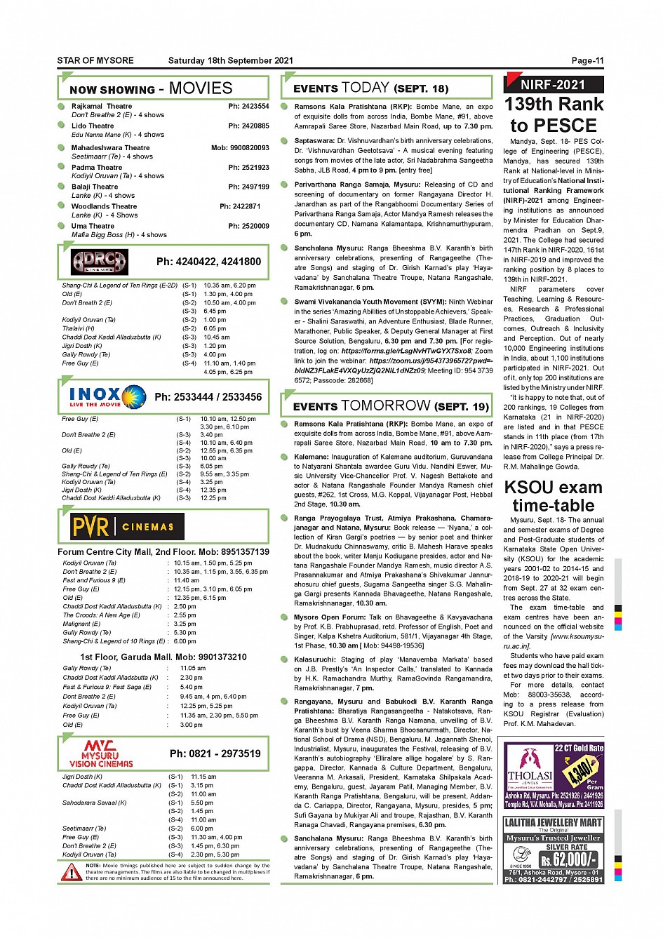 Star of Mysore Page: 10 September 18, 2021 << First << 10 >> Last >> Page 1Page 2Page 3Page 4Page 5Page 6Page 7Page 8Page 9Page 10Page 11 × Star of Mysore << First << 10 >> Last >> Page-001Page-002Page-003Page-004Page-005Page-006-007Page-008Page-009Page-010Page-011Page-012 Page-011