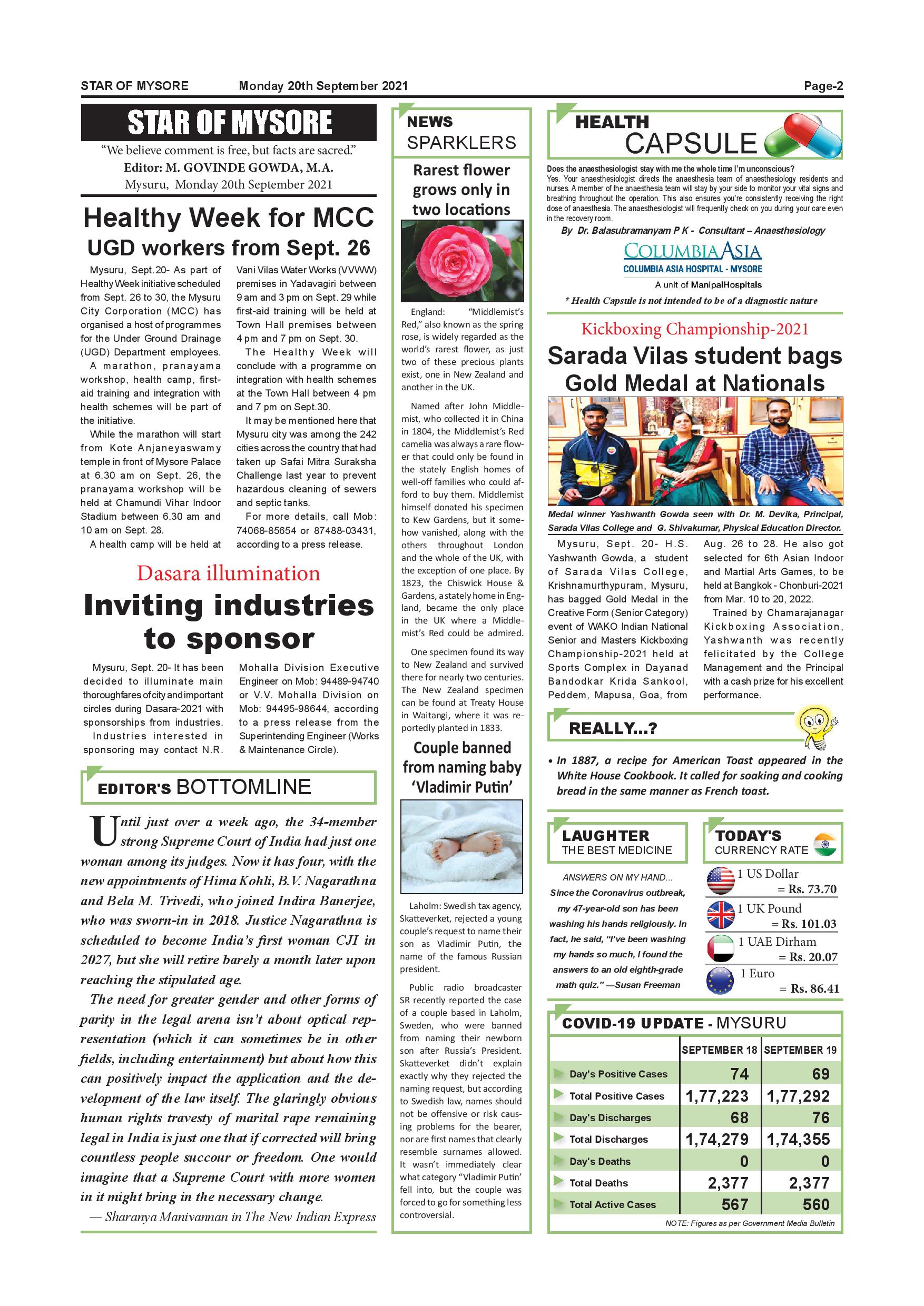 Star of Mysore Page: 2 September 20, 2021 << First << 2 >> Last >> Page 1Page 2Page 3Page 4Page 5Page 6Page 7Page 8Page 9Page 10Page 11Page 12 × Star of Mysore << First << 2 >> Last >> page-001page-002page-003page-004page-005page-006page-007page-008page-009page-010page-011page-012 page-002