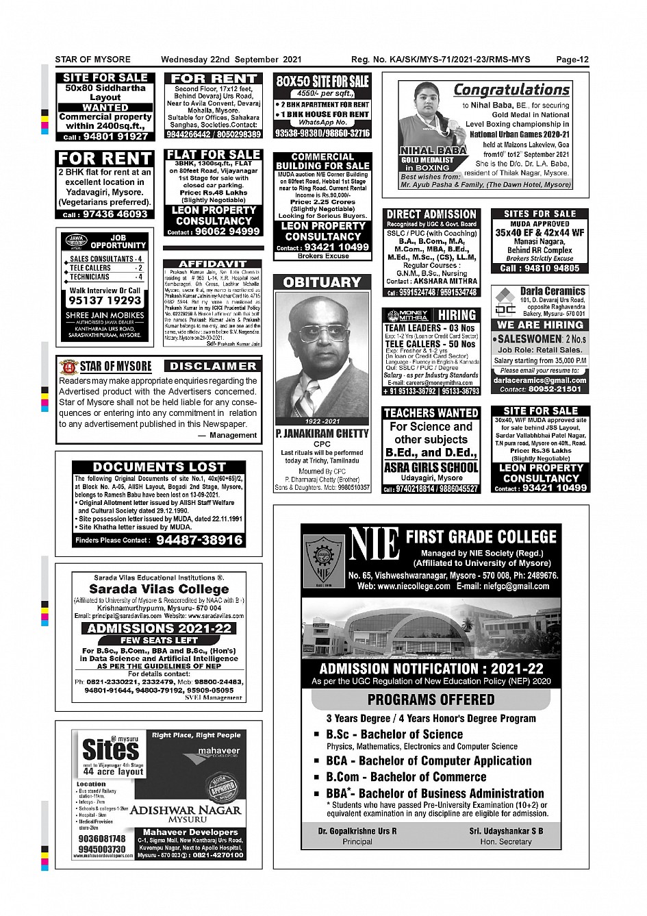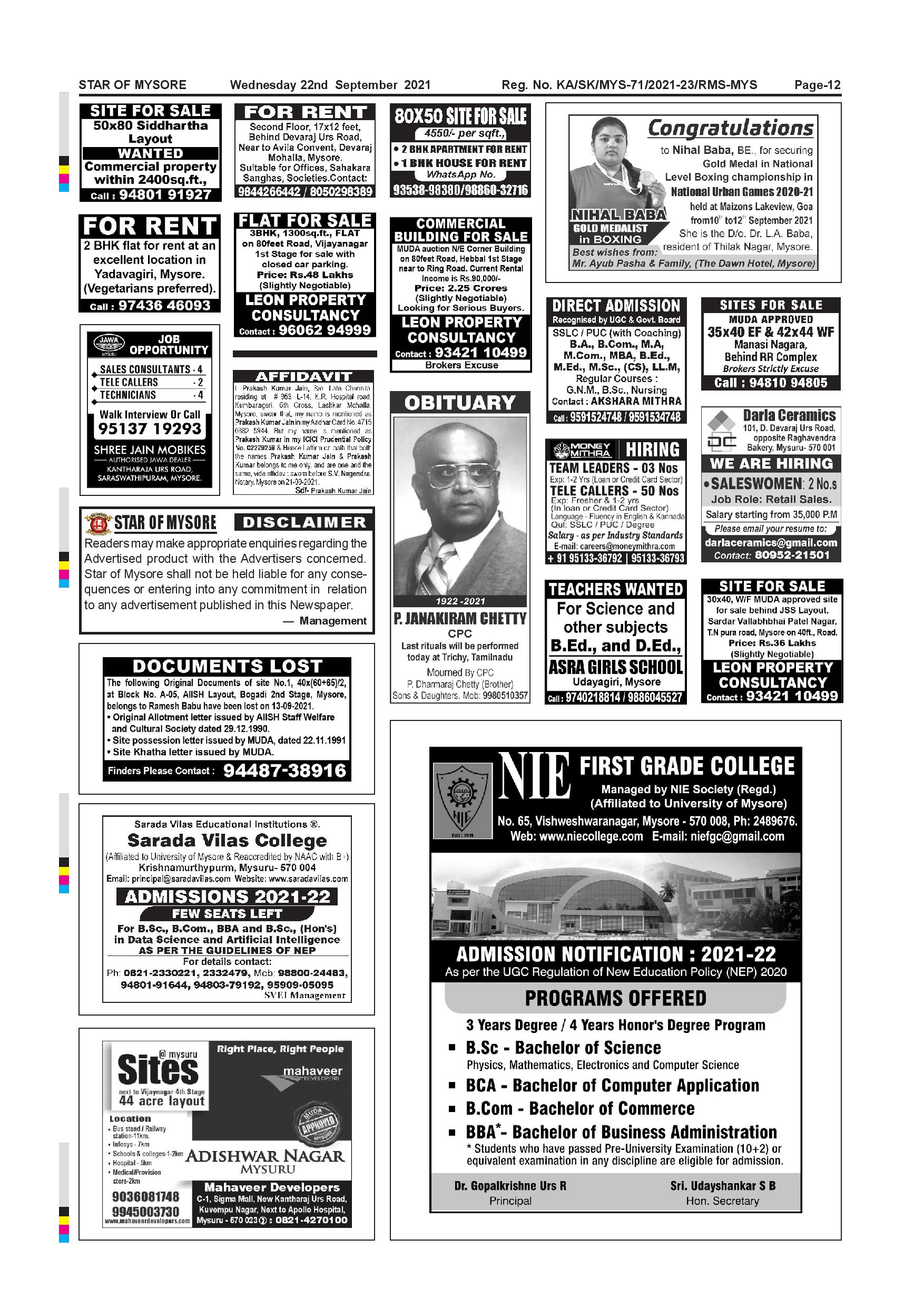 Star of Mysore Page: 12 September 22, 2021 << First << 12 >> Last >> Page 1Page 2Page 3Page 4Page 5Page 6Page 7Page 8Page 9Page 10Page 11Page 12 × Star of Mysore << First << 12 >> Last >> page-001page-002page-003page-004page-005page-006page-007page-008page-009page-010page-011page-012 page-012